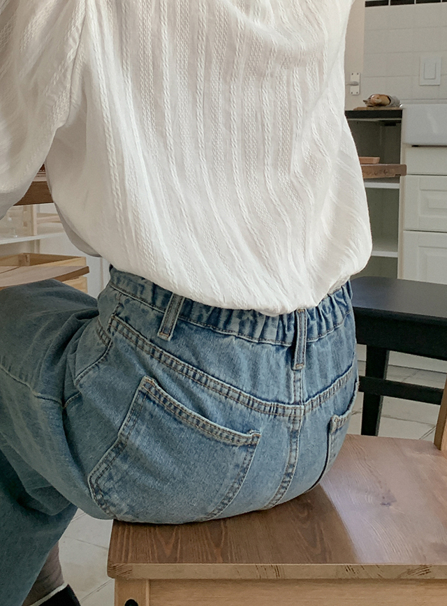 데이브 뒷밴딩 宽 牛仔色 短裤 72150