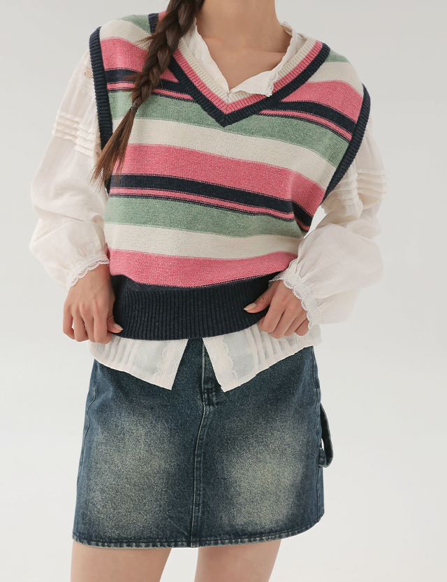 • 코즈민 羊毛 条纹 针织衫 马甲 72395