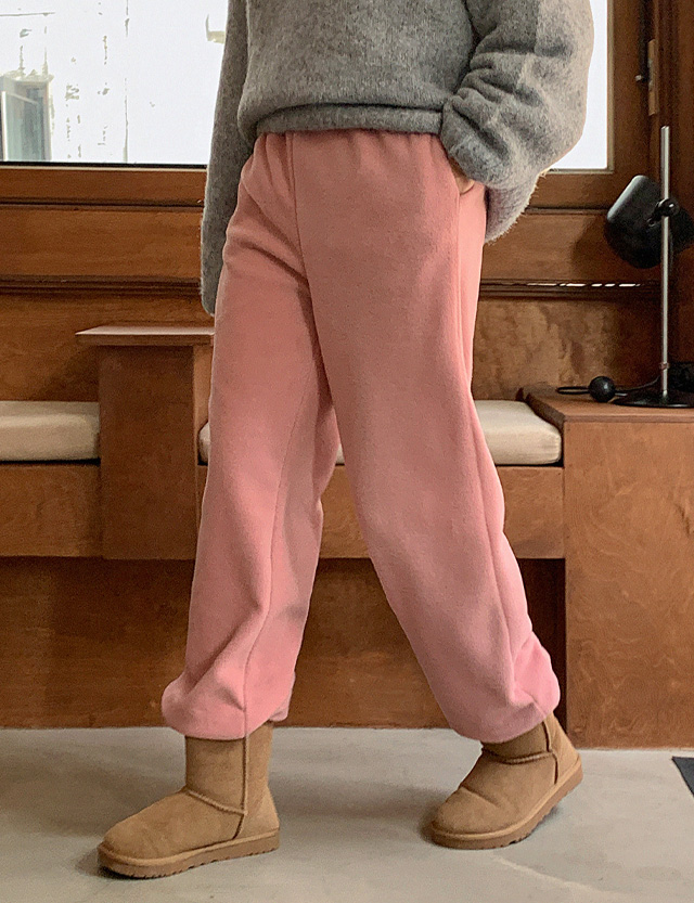 포근하고 따뜻한 플리스 원단을 사용하여 한겨울에도 따뜻하게 입을 수 있는 조거 팬츠