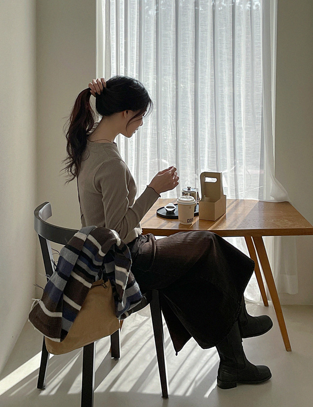 ✔ 잔잔한 세로 골지 원단으로 밋밋하지 않은 조직감