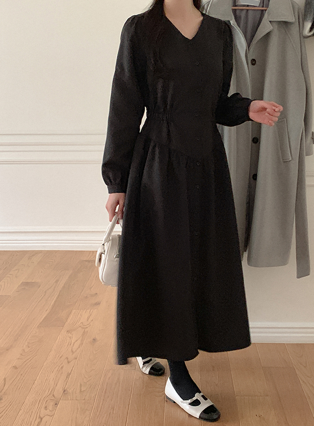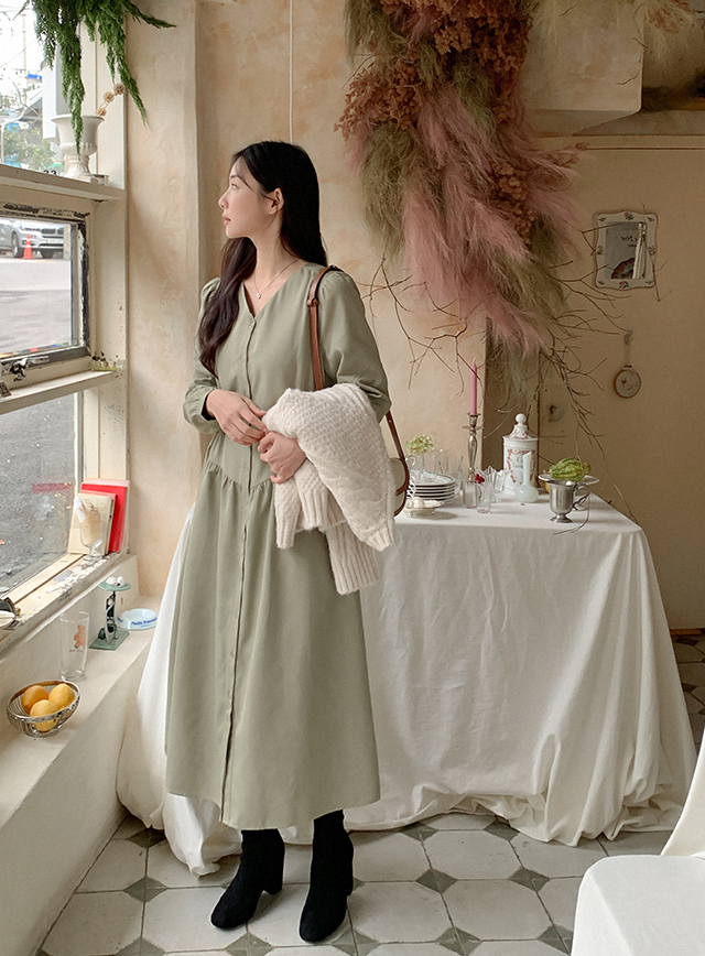 캐주얼하며 여성스러운 실루엣의 롱 원피스