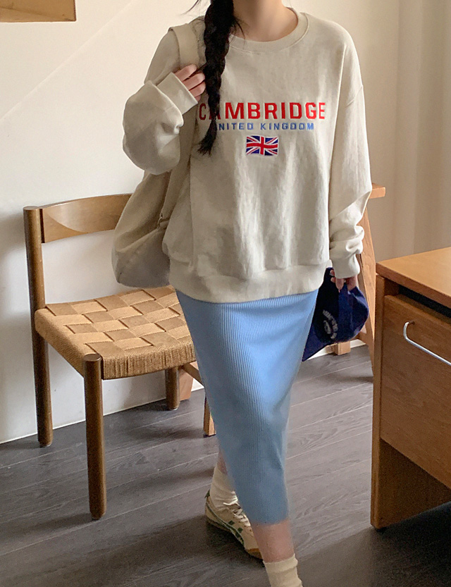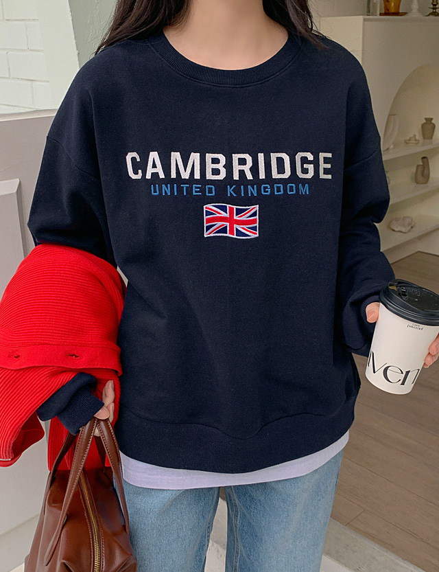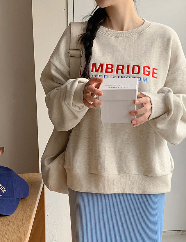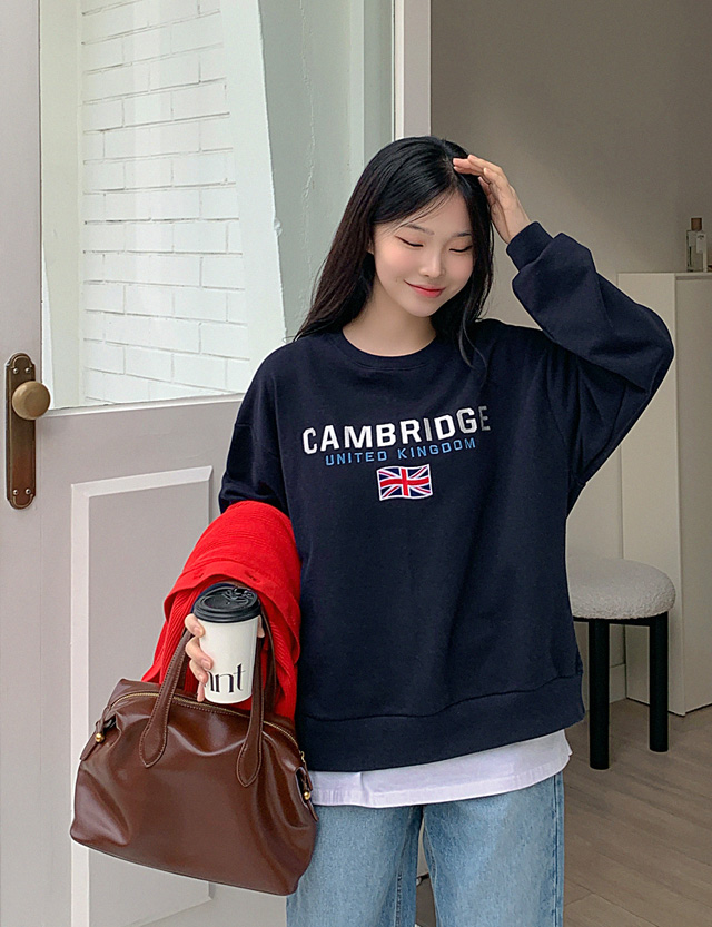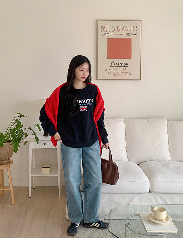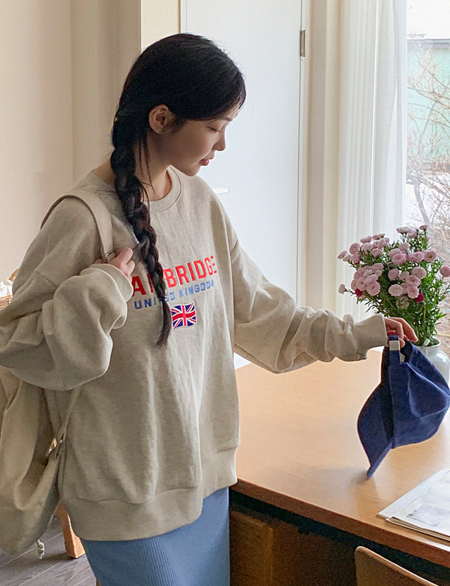 포인트가 되는 자수 디테일로 캐주얼한 무드의 자수 맨투맨