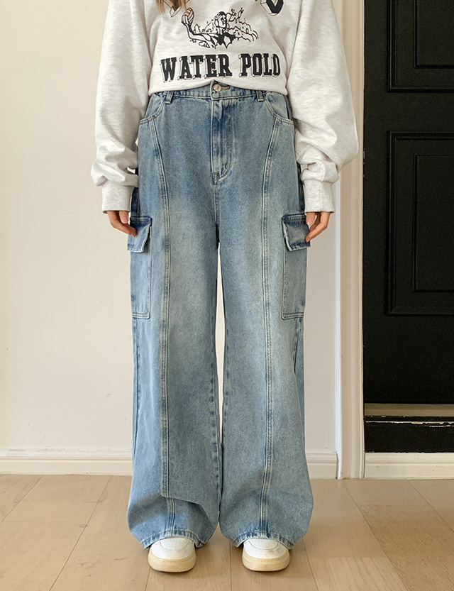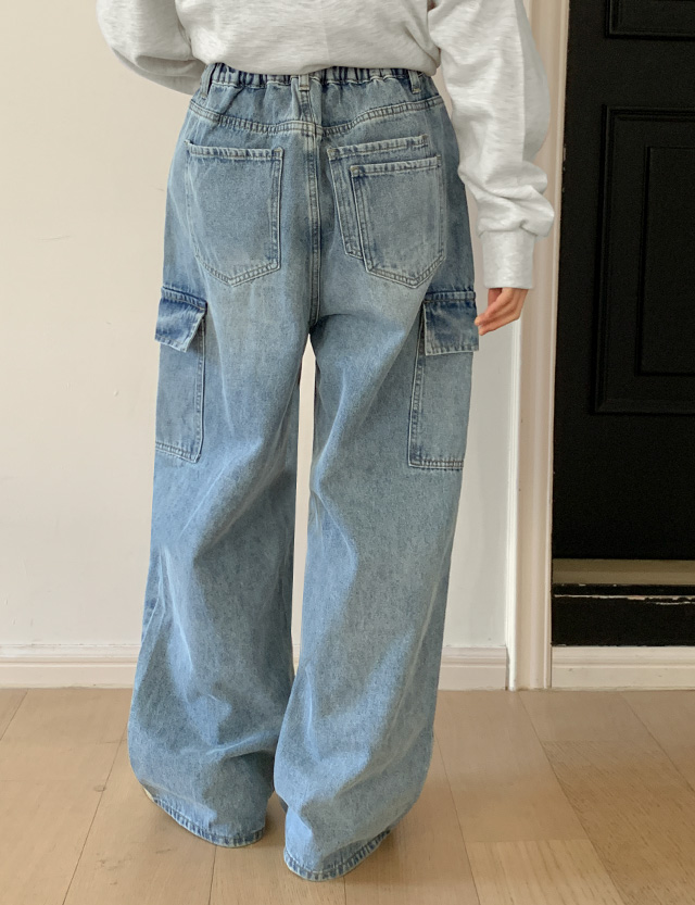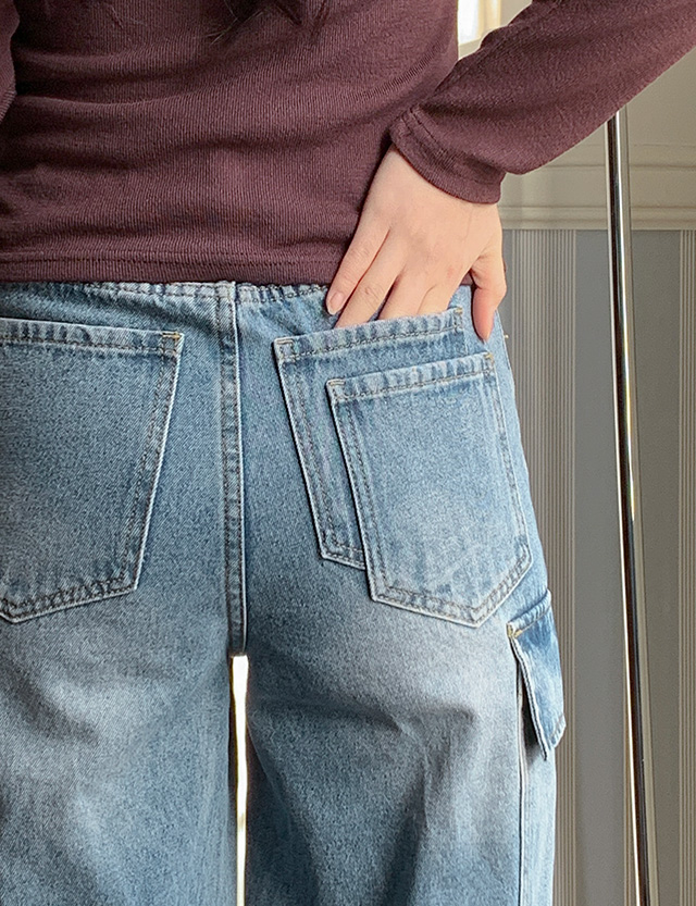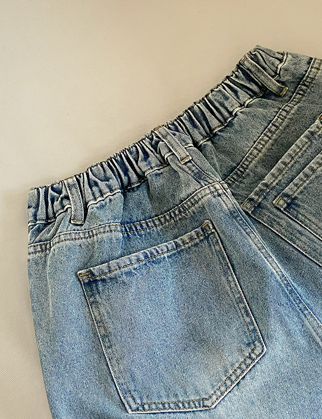 먼테리 松紧带 宽 工装裤 牛仔色 短裤 73980