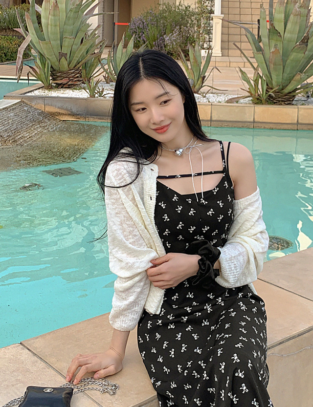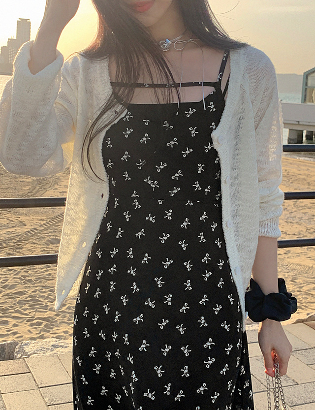 베이직한 디자인에 시스루 조직 니트 가디건