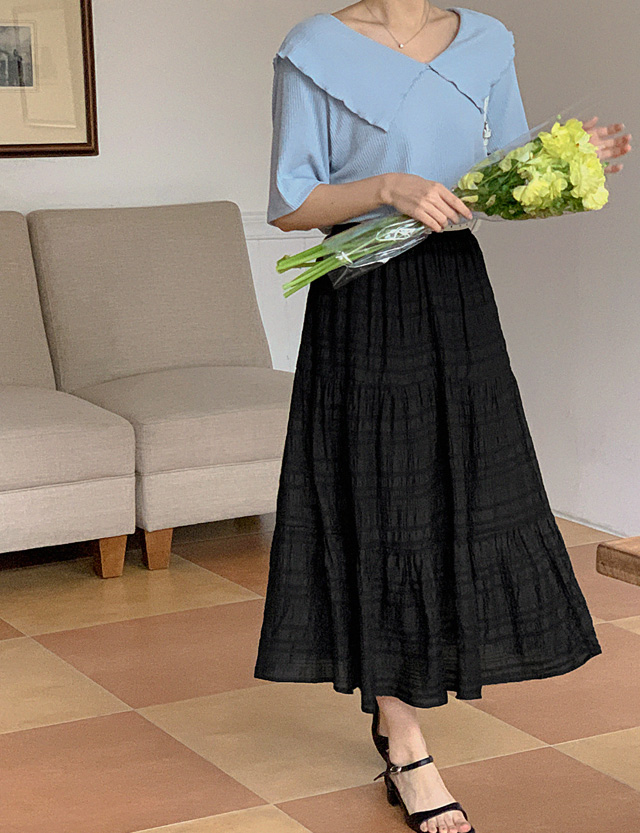 쿠니키 松紧带 层褶裙 长款 裙子 74900