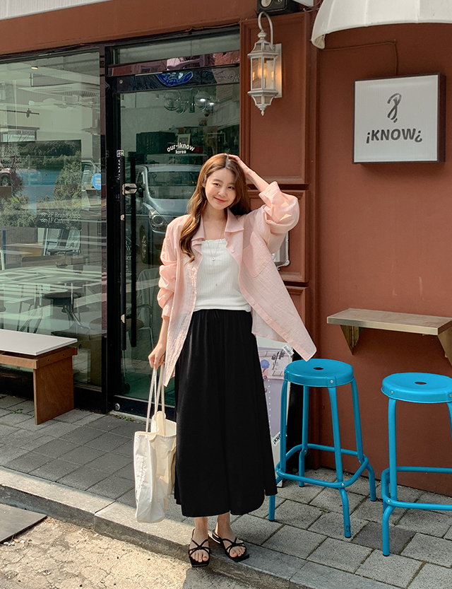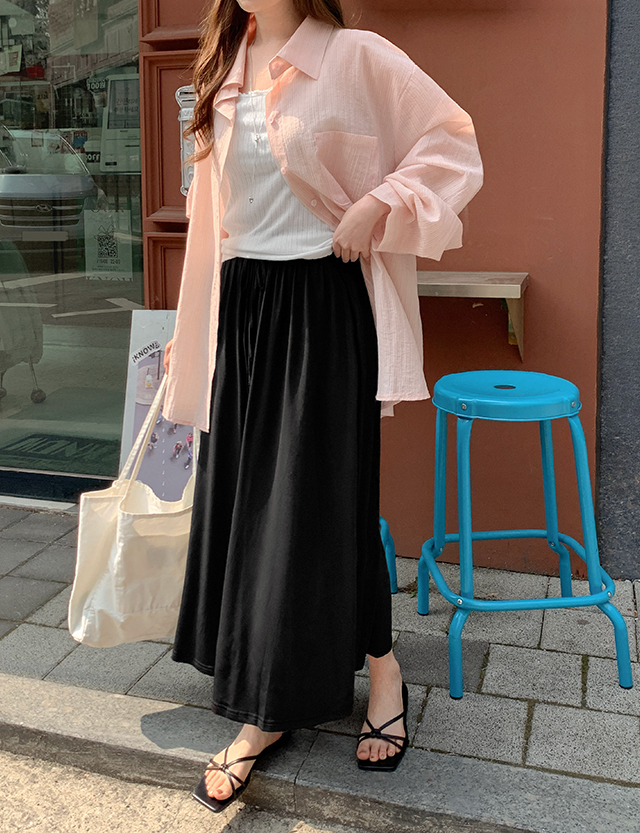 찰랑이는 부드러운 착용감이 돋보이는 스커트에요