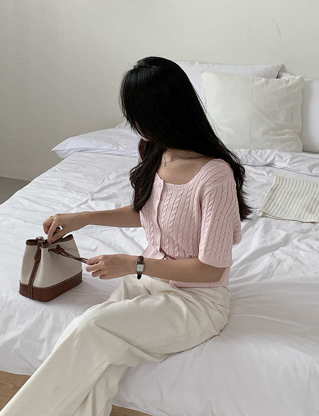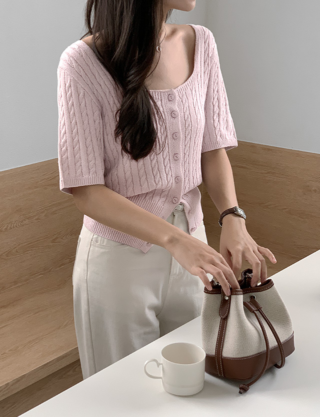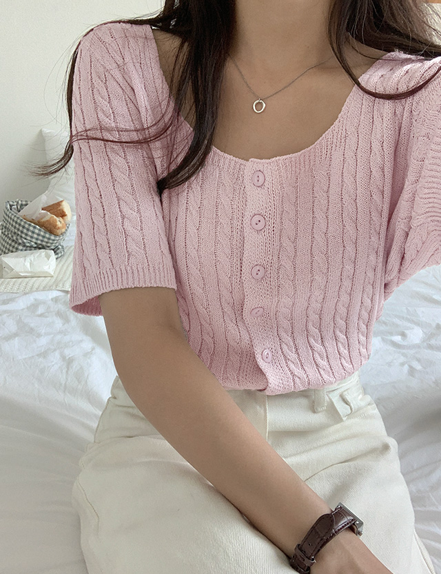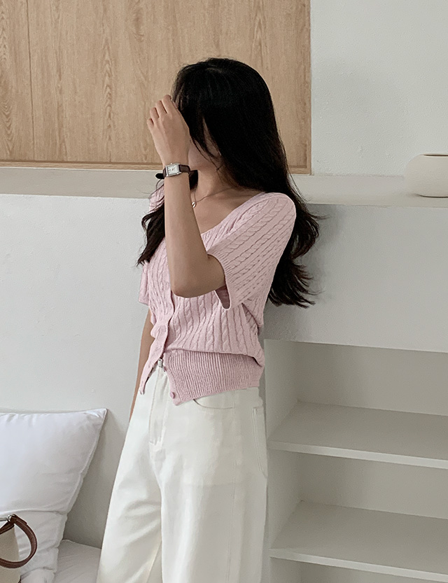 페이 麻花型 半袖 针织衫 开衫 75466