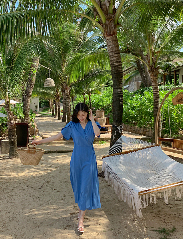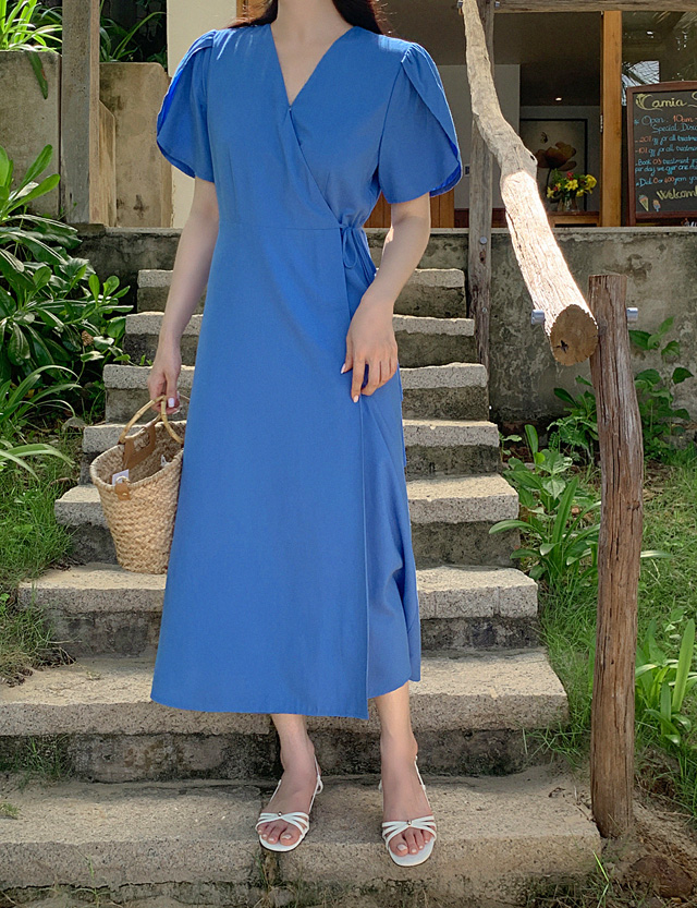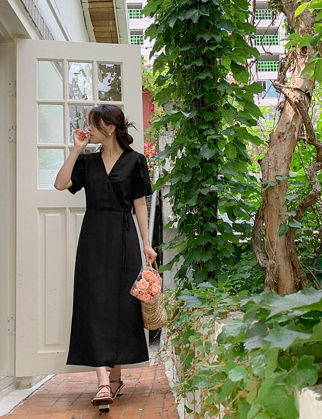 여리여리 여성스러운 무드의 랩 원피스