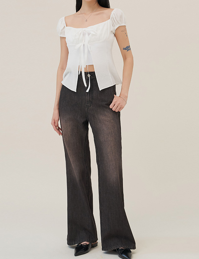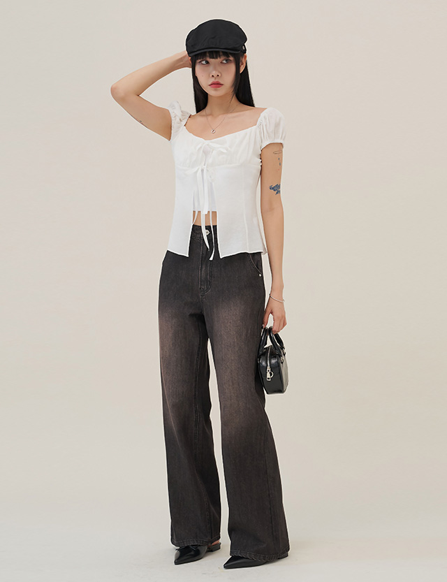 케듀 뒷밴딩 세미 宽 靴型裤 牛仔色 短裤 76051