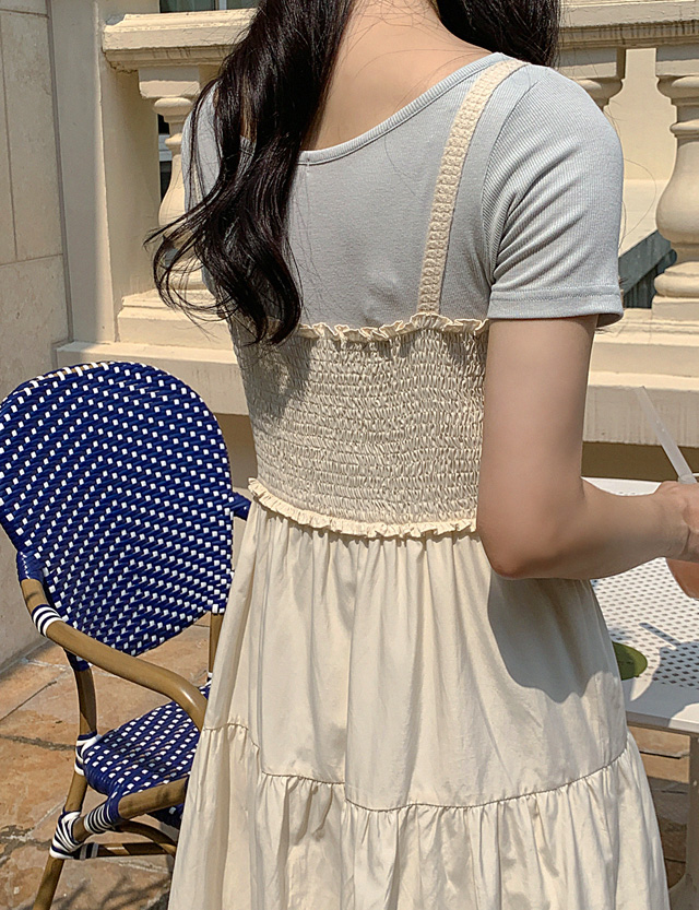 루샤이 蕾丝 모티브 스모킹 长款 连衣裙 76979