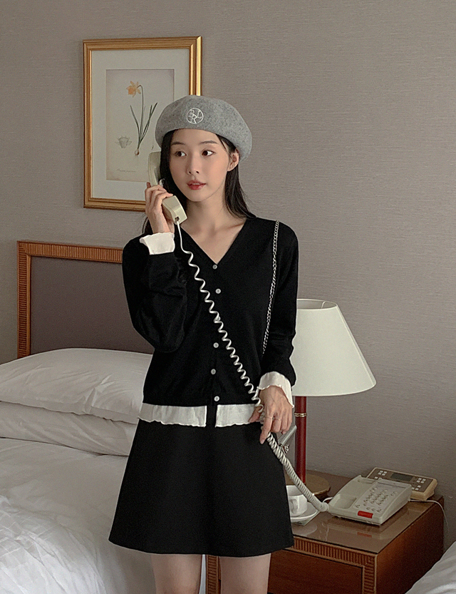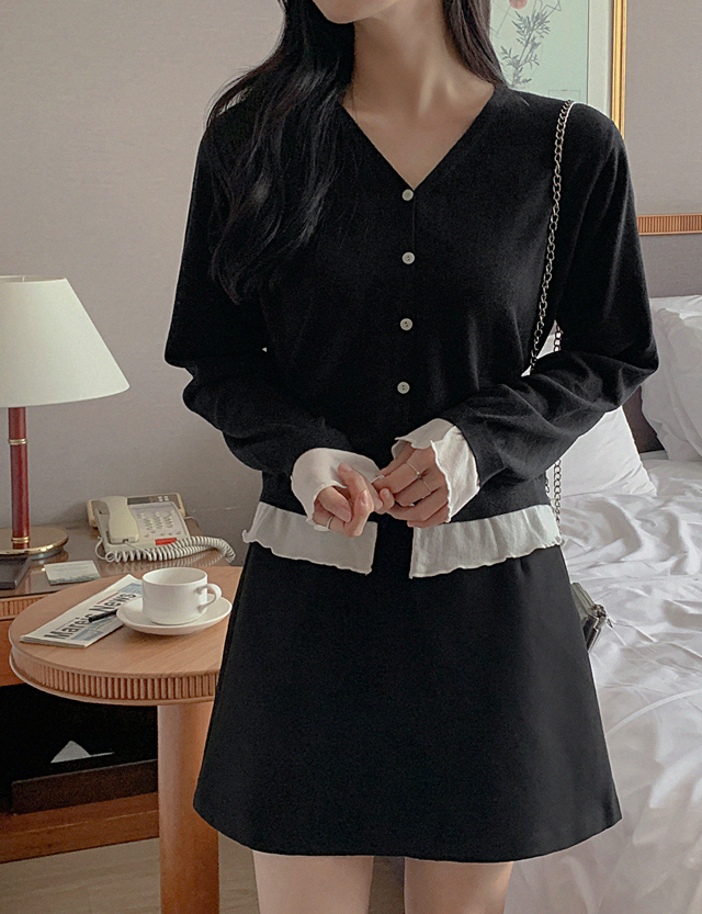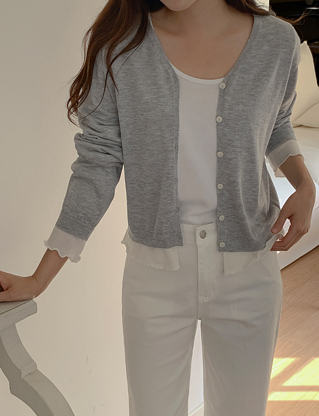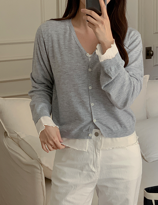 여리여리 레이어드 효과의 니트 가디건