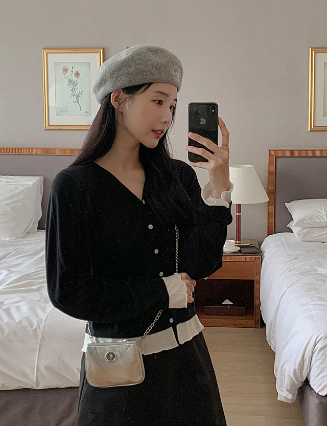 여리링 分层 配色 羊毛 针织衫 开衫 77490