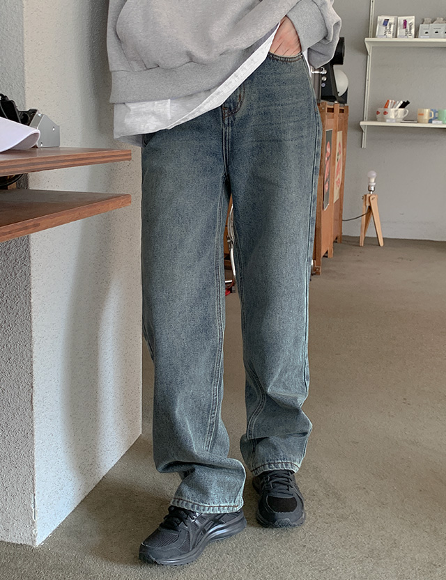 슬림한 아웃핏의 스트레이트 데님 팬츠