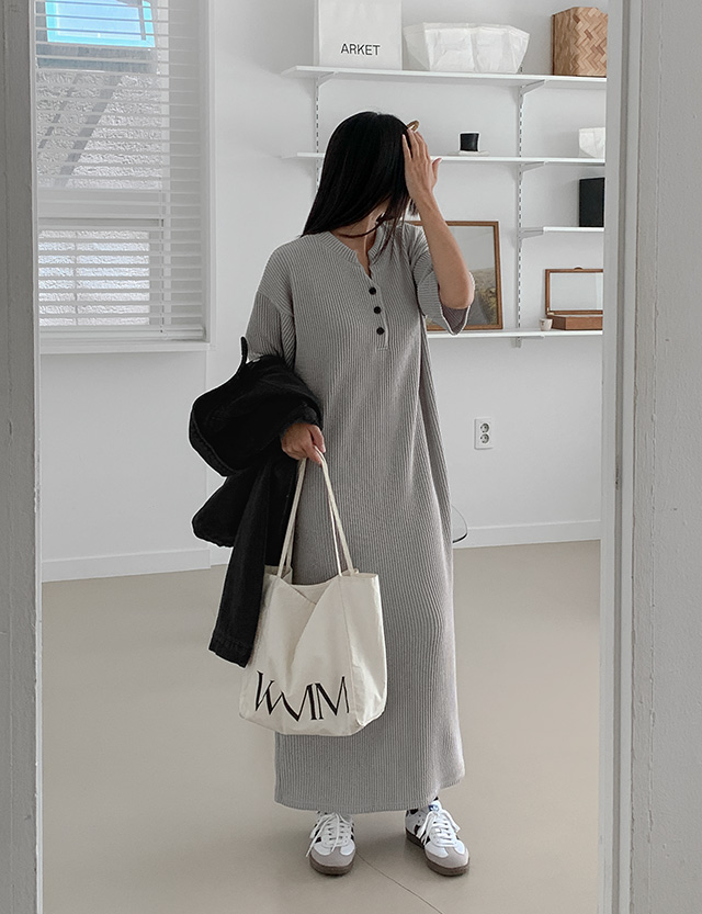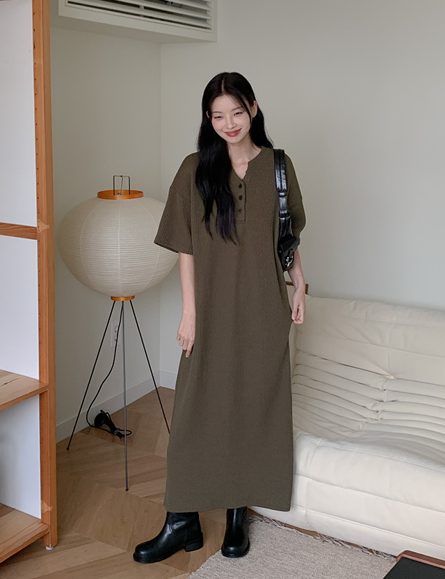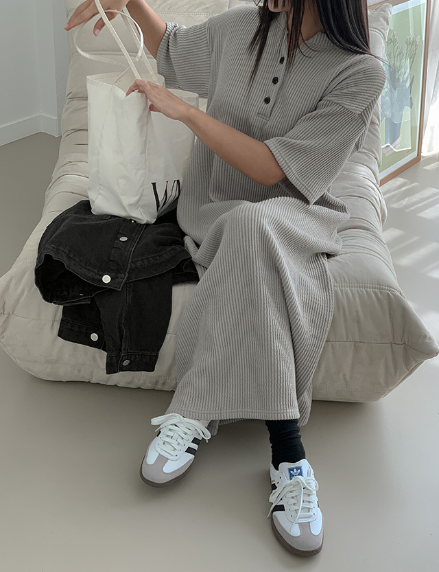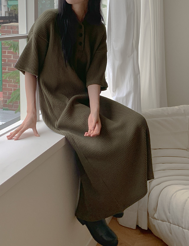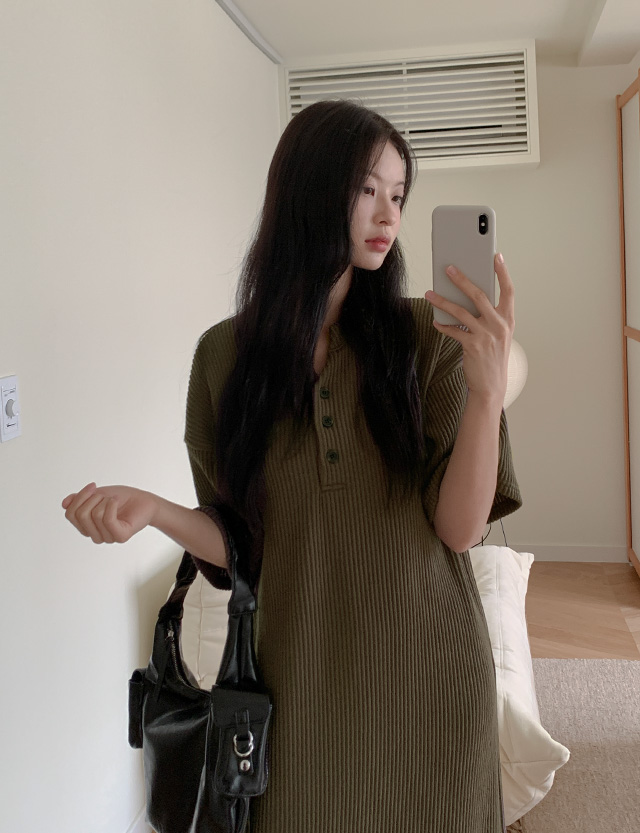 니트 같은 소재감이 매력적인 골지 반팔 원피스