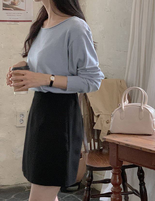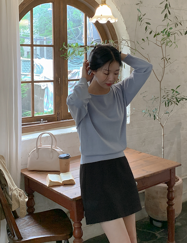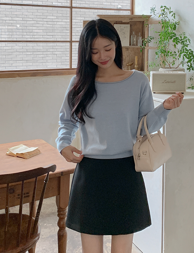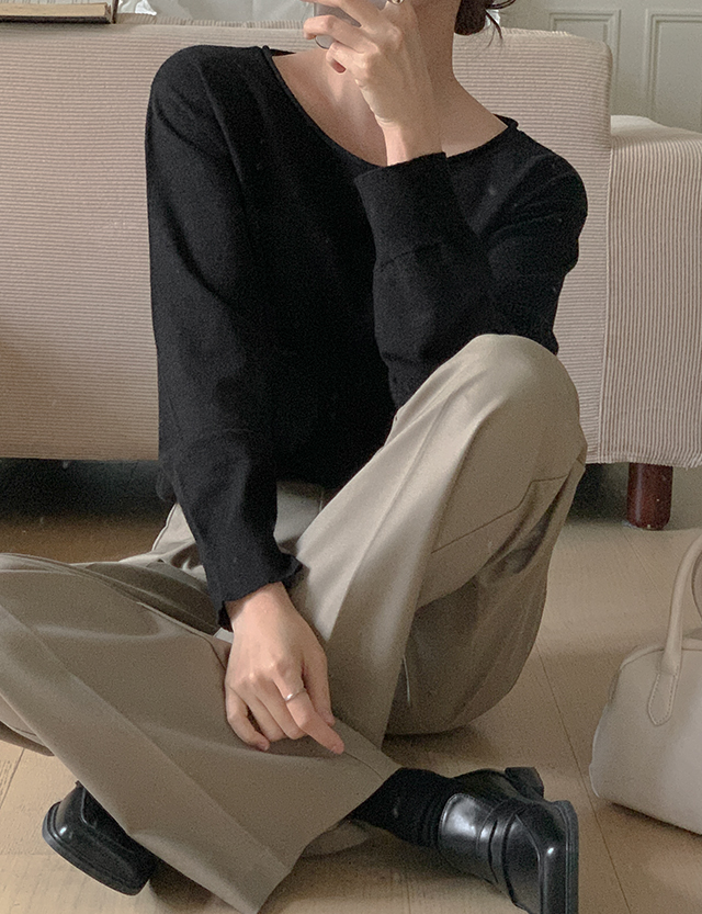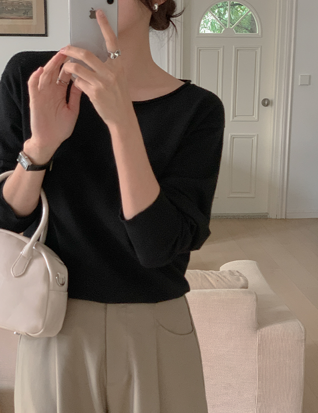 ✔ 넓은 보트넥 라인에 돌돌 말려있는