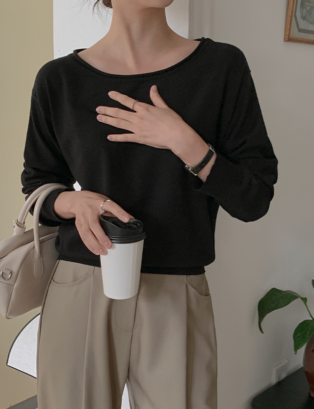 보트넥 크롭 니트
