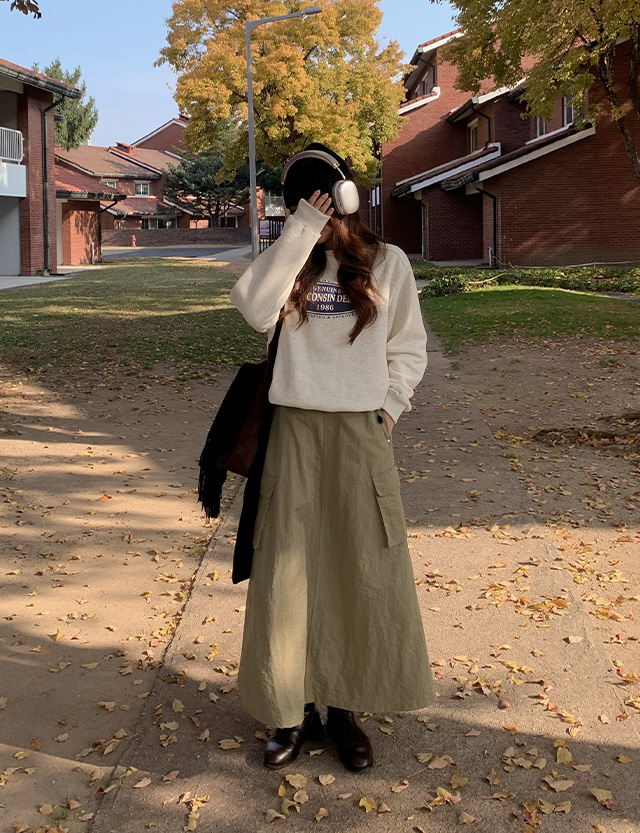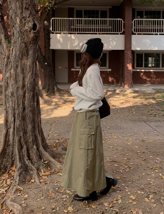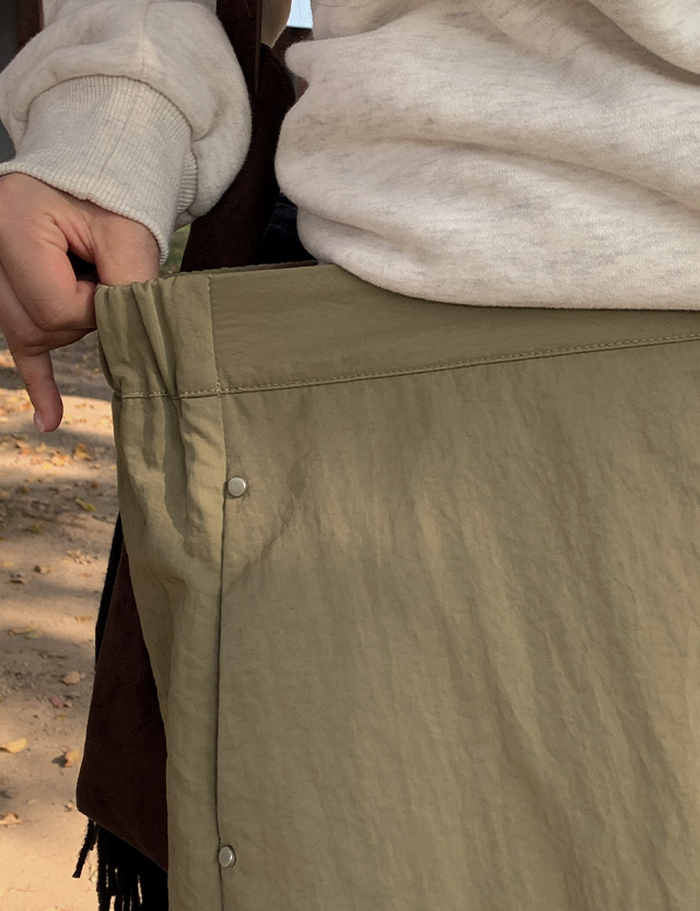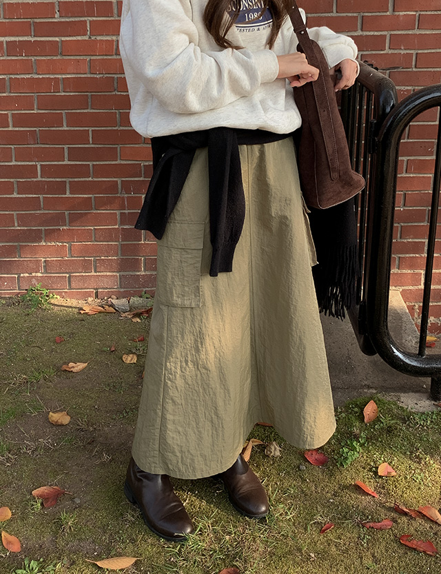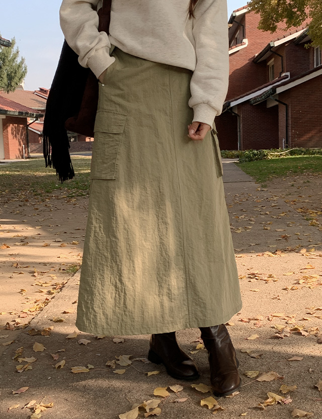 나일론 원단으로 가벼운 생활 방수 가능한 카고 롱 스커트