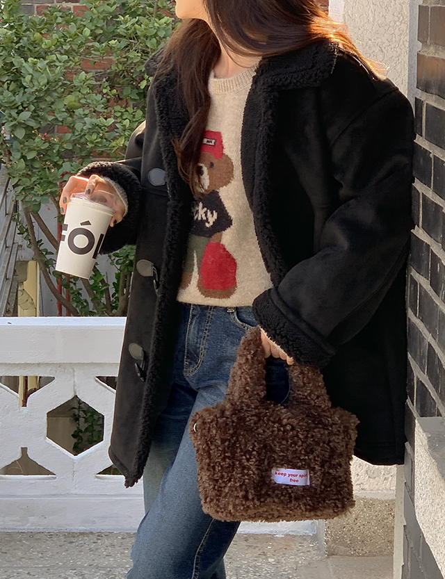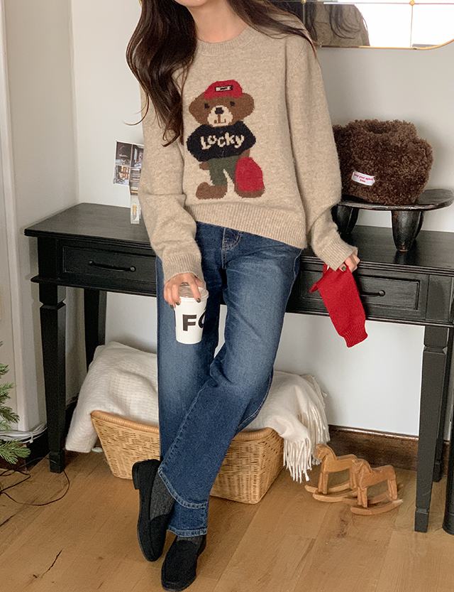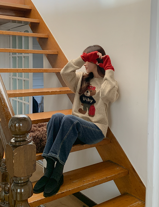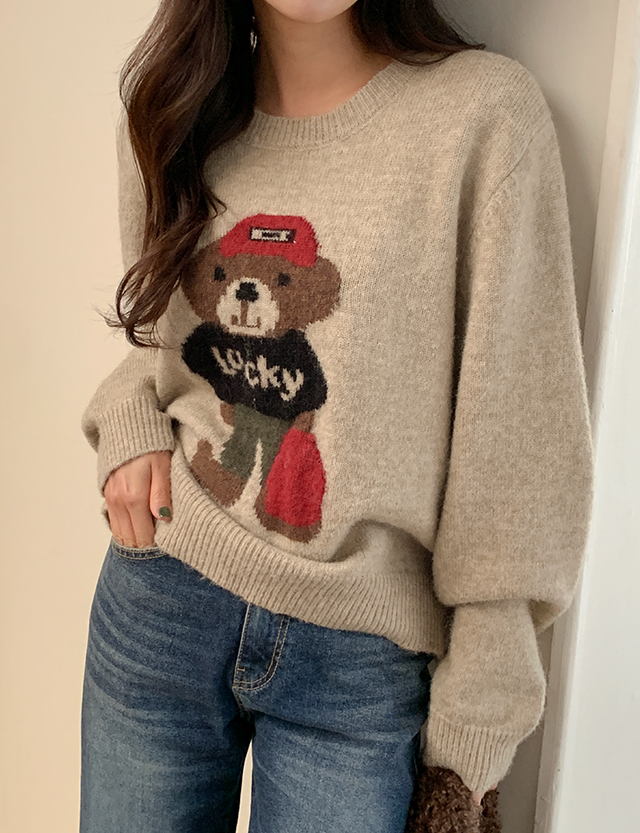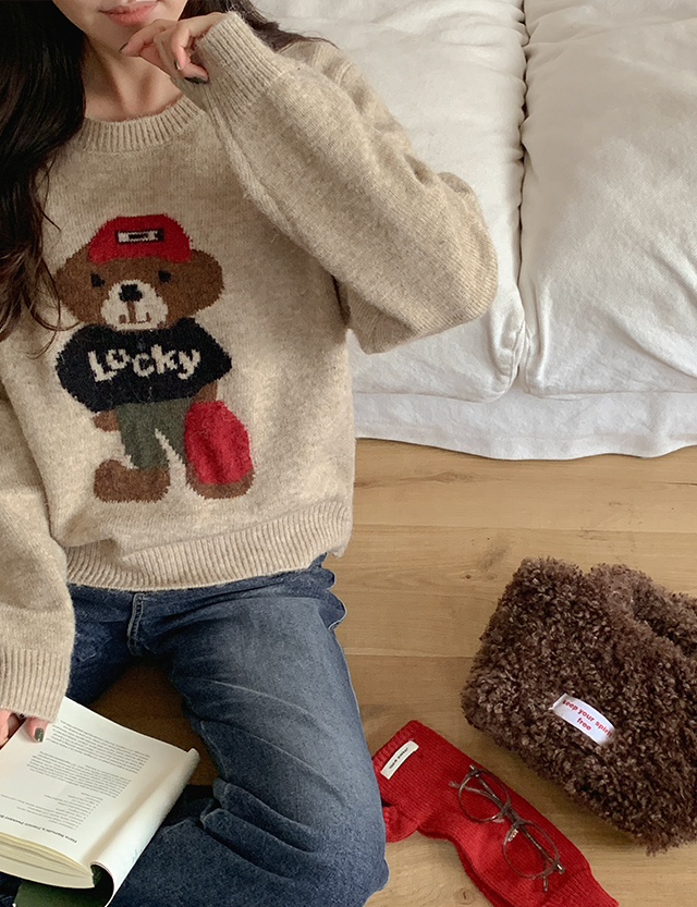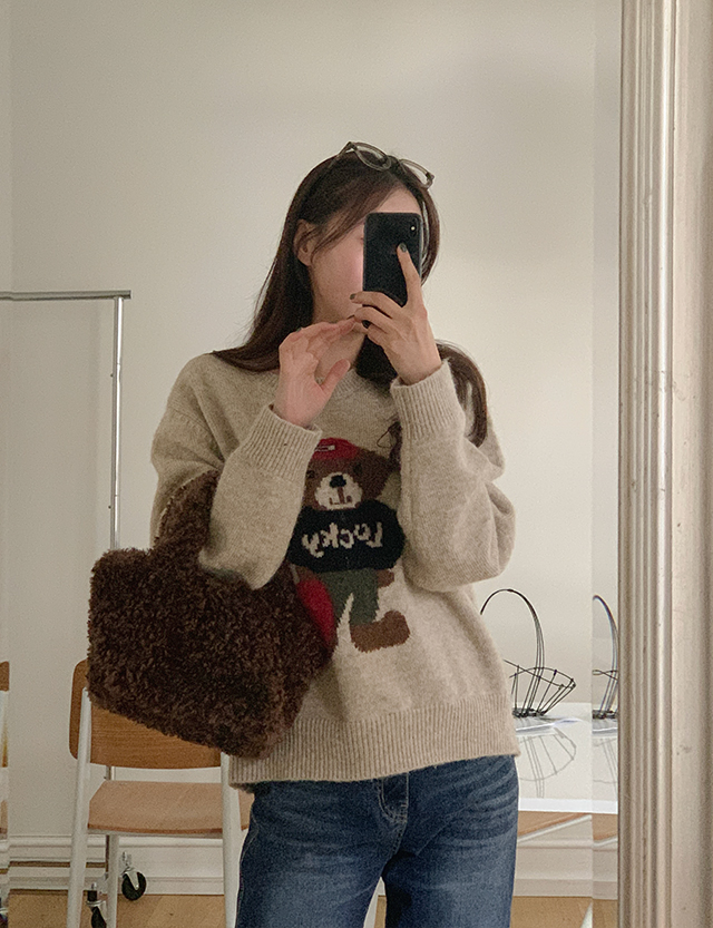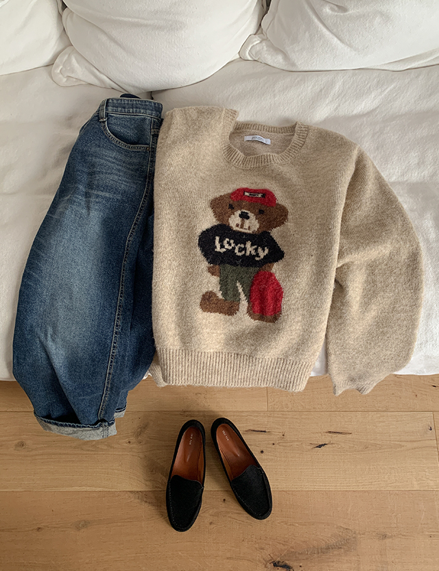 귀여운 곰돌이가 포인트인 루즈핏 니트