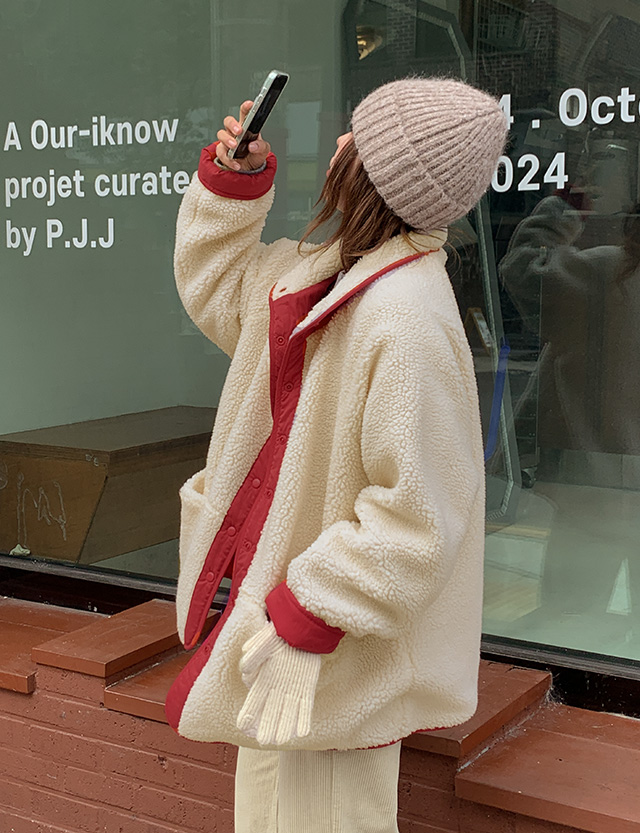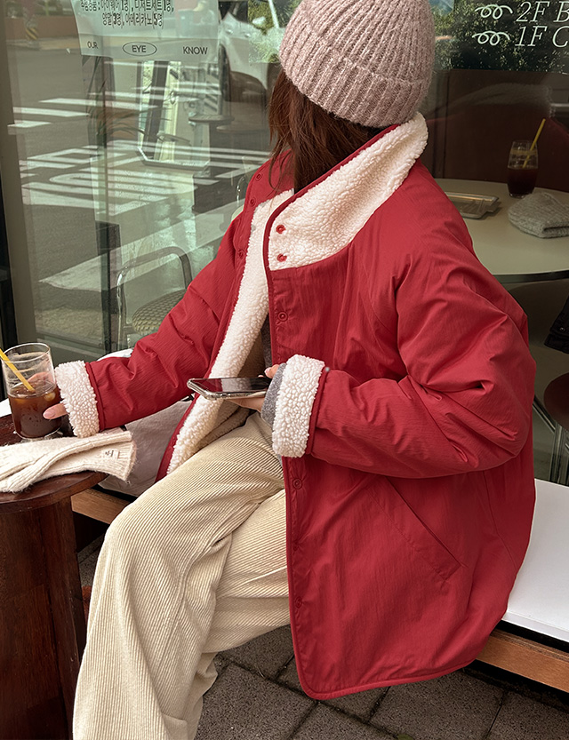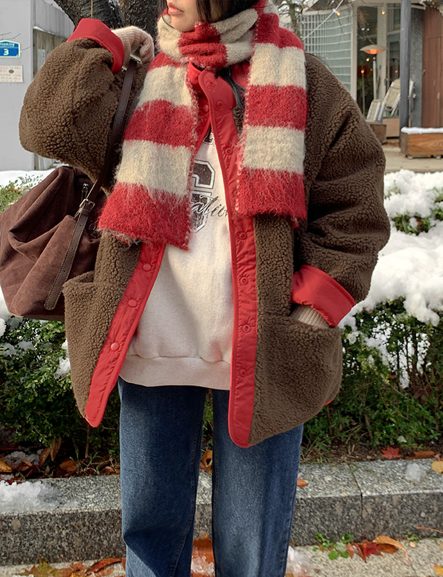 도톰한 뽀글이 덤블 소재로 추운 날씨에도 따뜻하게-
