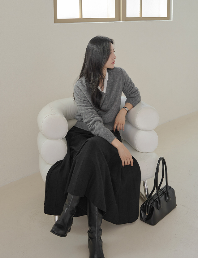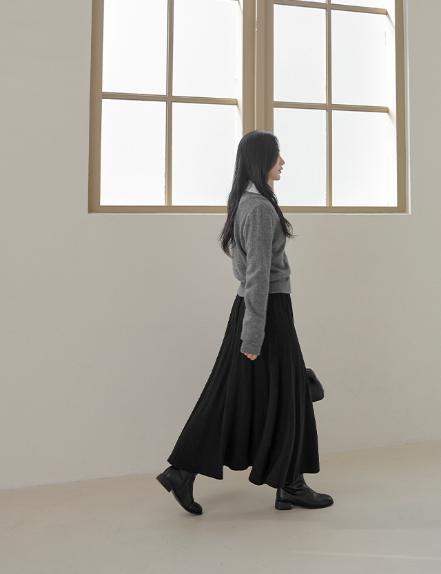 세르쥬 松紧带 针织衫 波浪群/喇叭裙 长款 裙子 79301