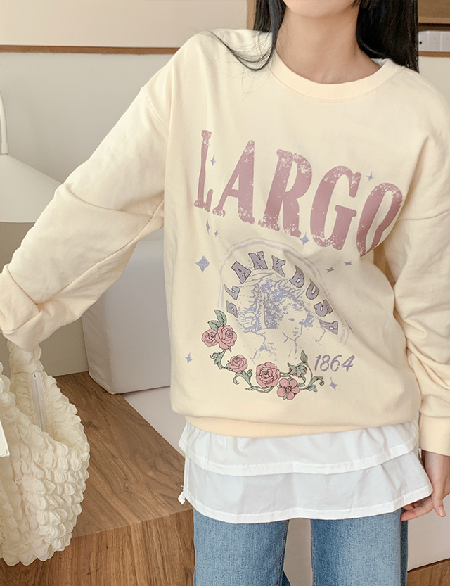 라르고 印刷 宽松 套头卫衣 80325