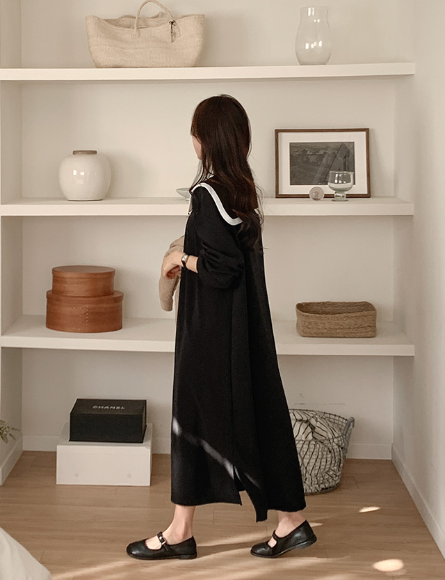 새티아 宽松 빅카라 长款 连衣裙 80210