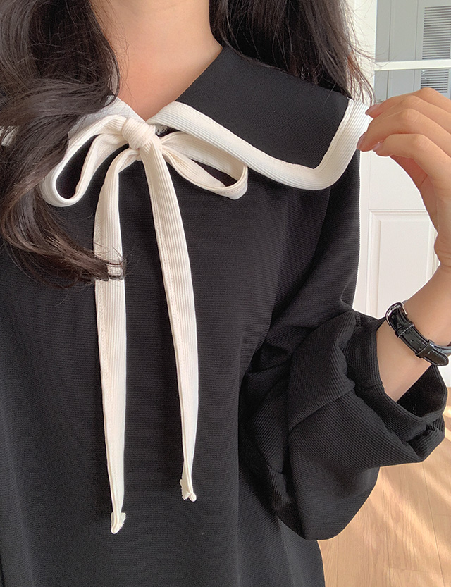 세일러 카라에 리본 포인트를 주어