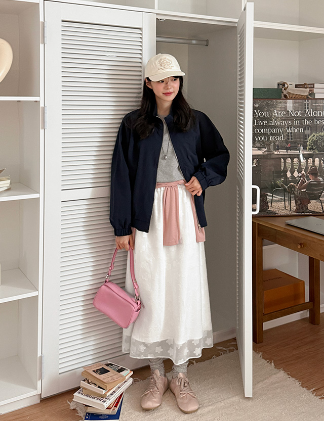 ✔ 엠보 플라워 텍스쳐가 화사한 봄 나들이룩을