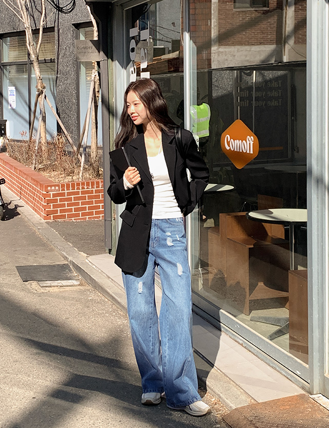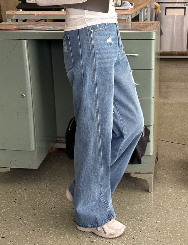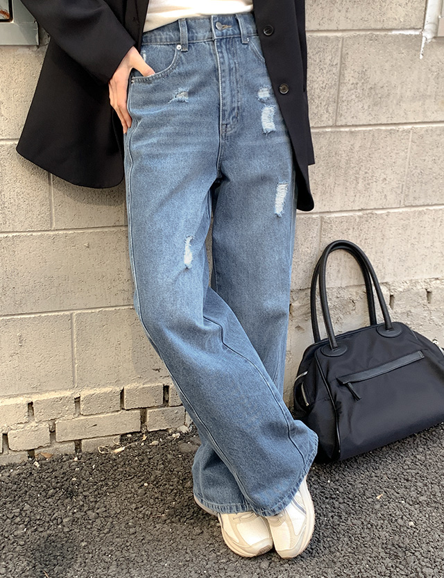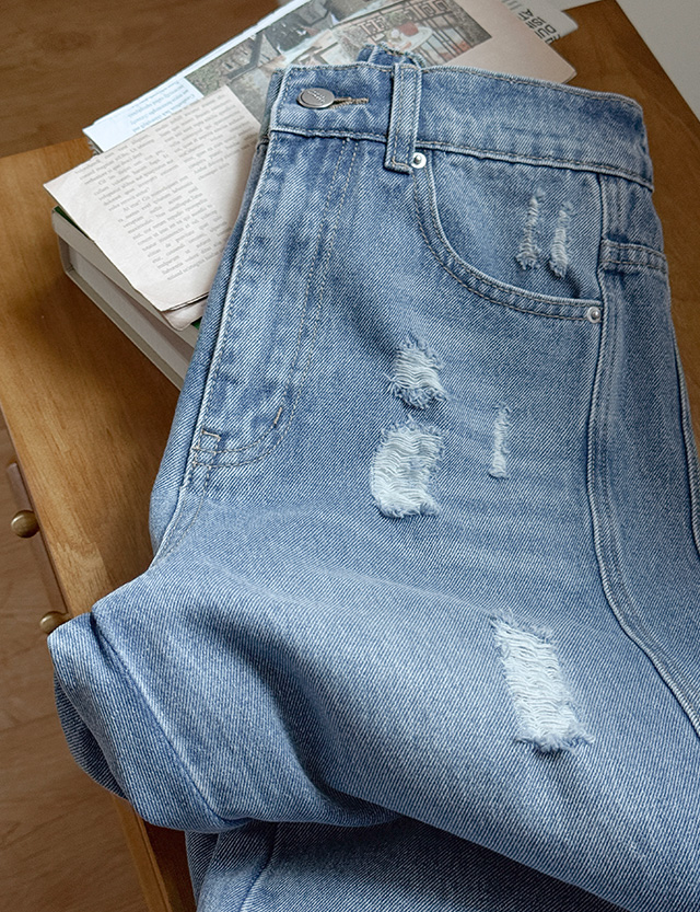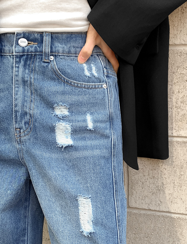 구제 포인트로 캐주얼한 데님 팬츠