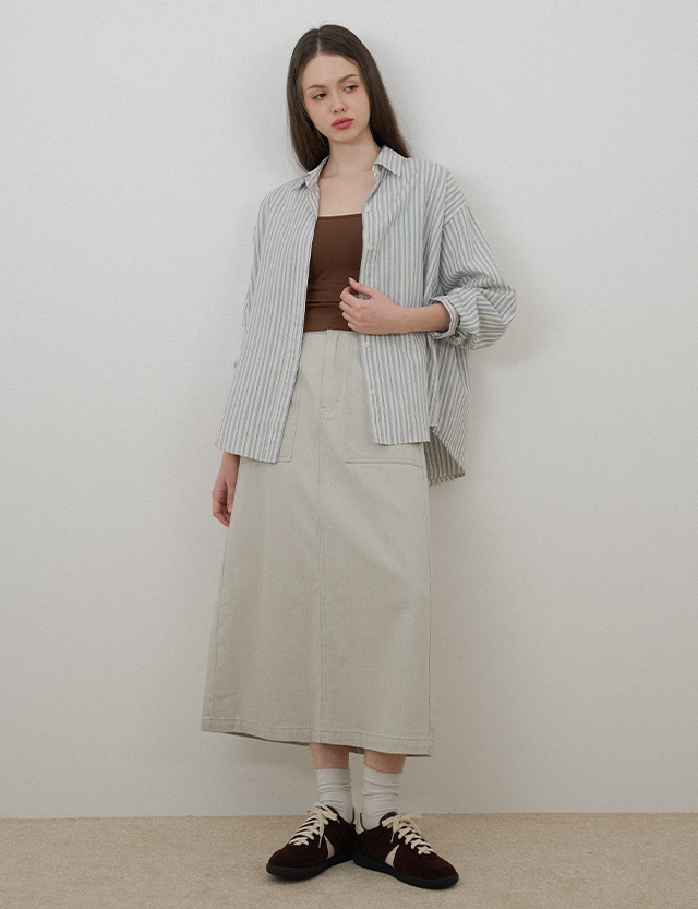 토븐 뒷밴딩 棉布 长款 裙子 80522