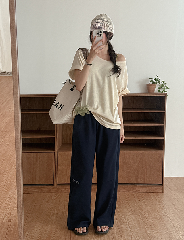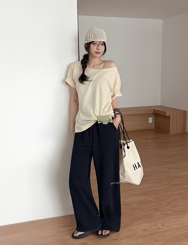 트렌디한 분위기가 돋보이는 밴딩 와이드 팬츠에요.