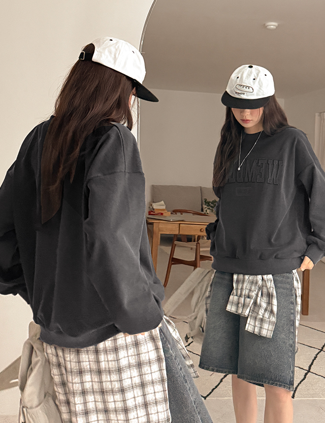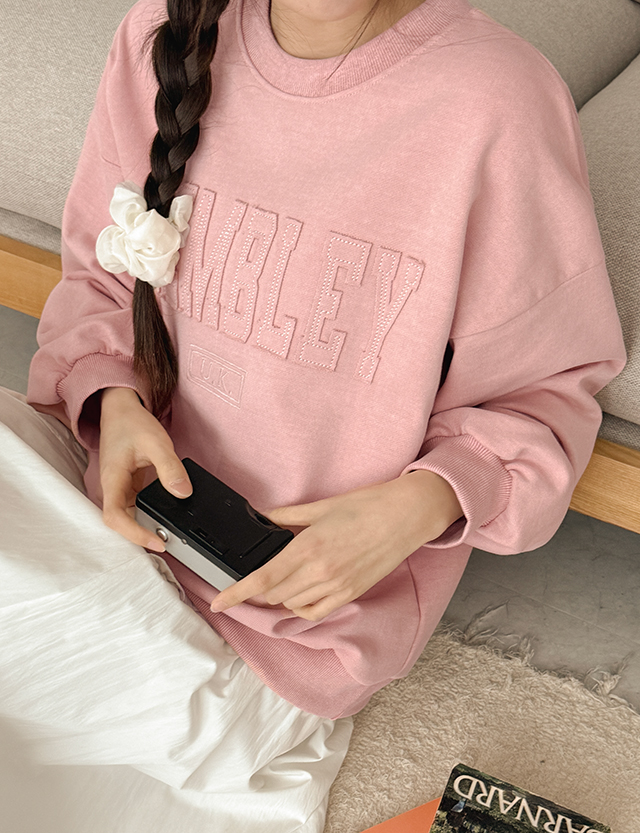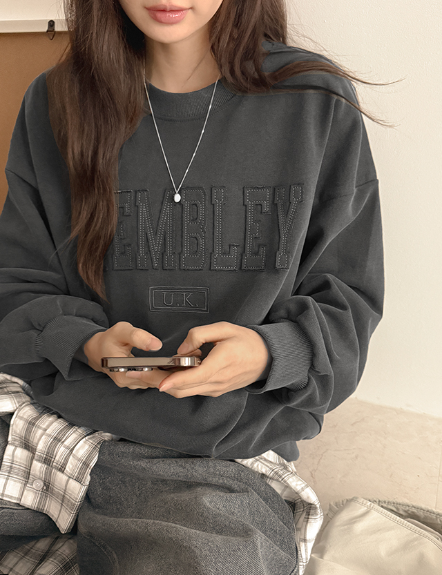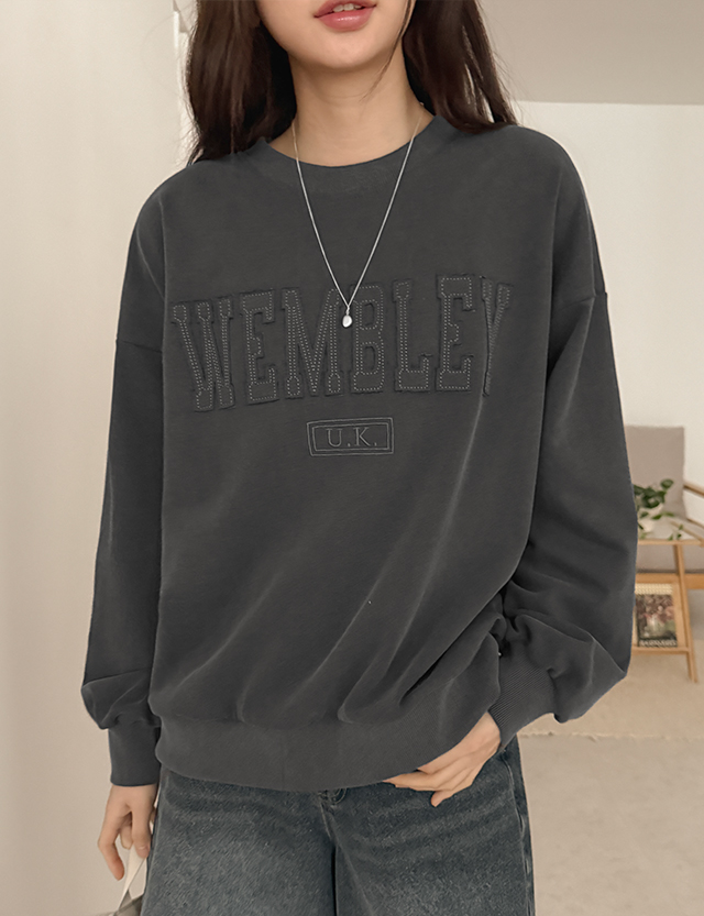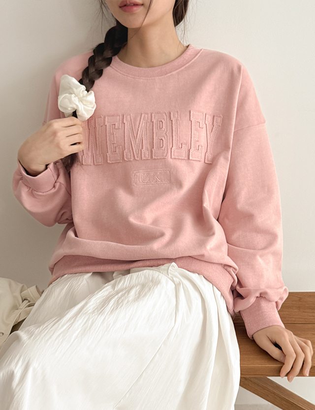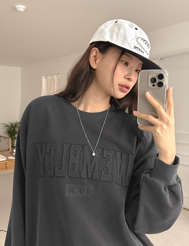 웸블리 刺绣 피그먼트 宽松 套头卫衣 80833
