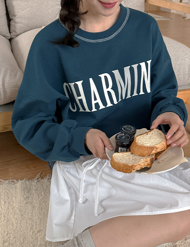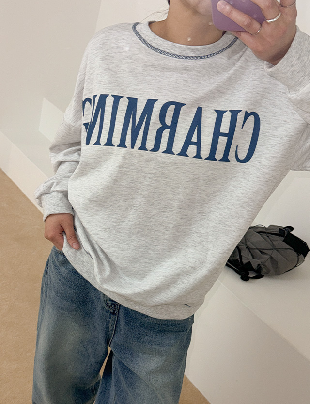잇챠밍 宽松 印刷 套头卫衣 80886
