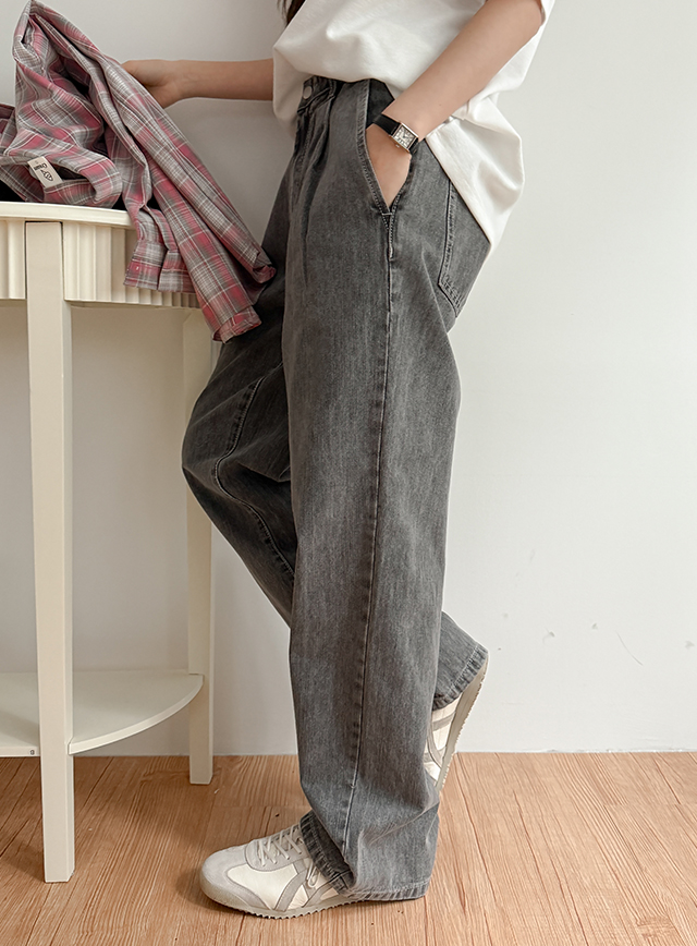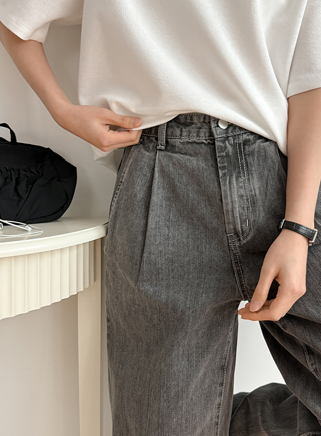 크럼딜 宽 핀턱 牛仔色 短裤 80846