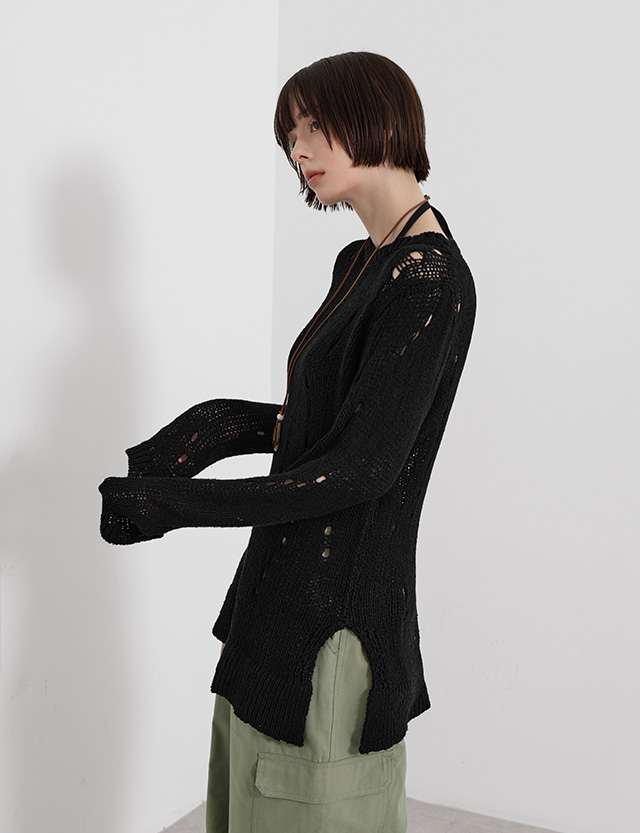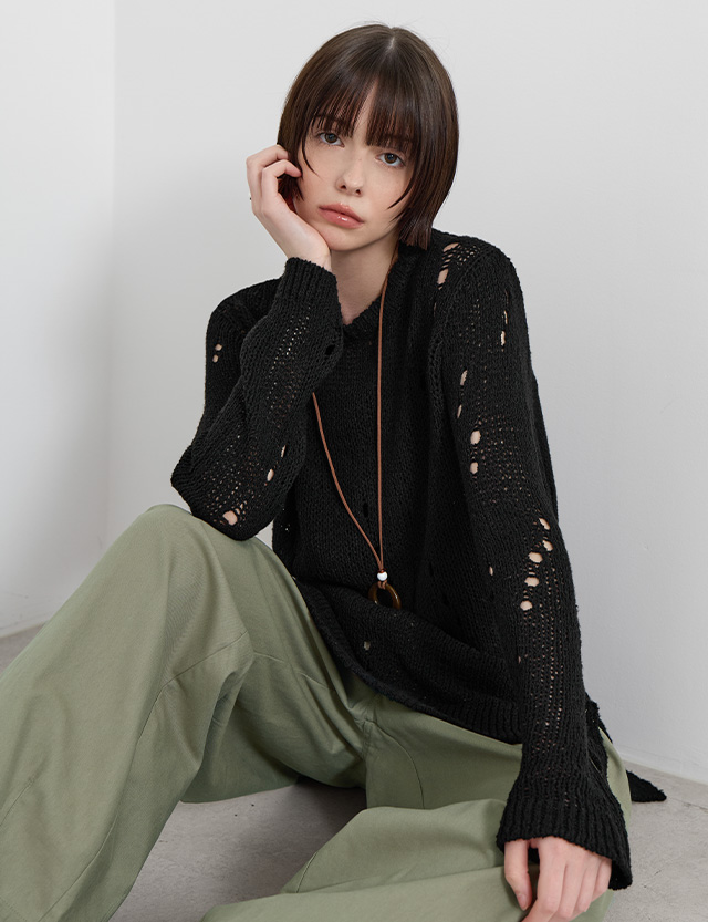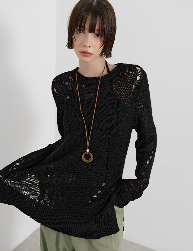 · 유니크하면서 여리한 무드를 연출해주는 데미지 니트