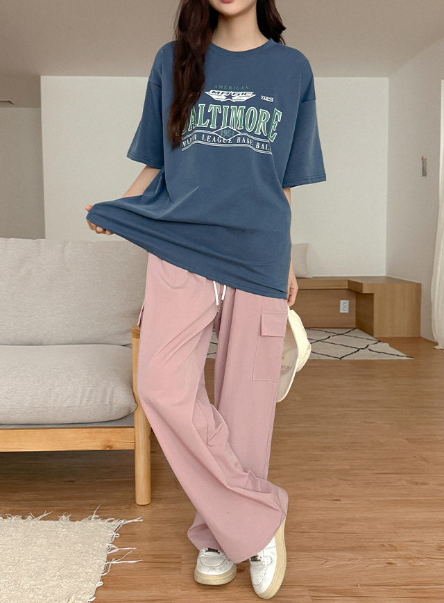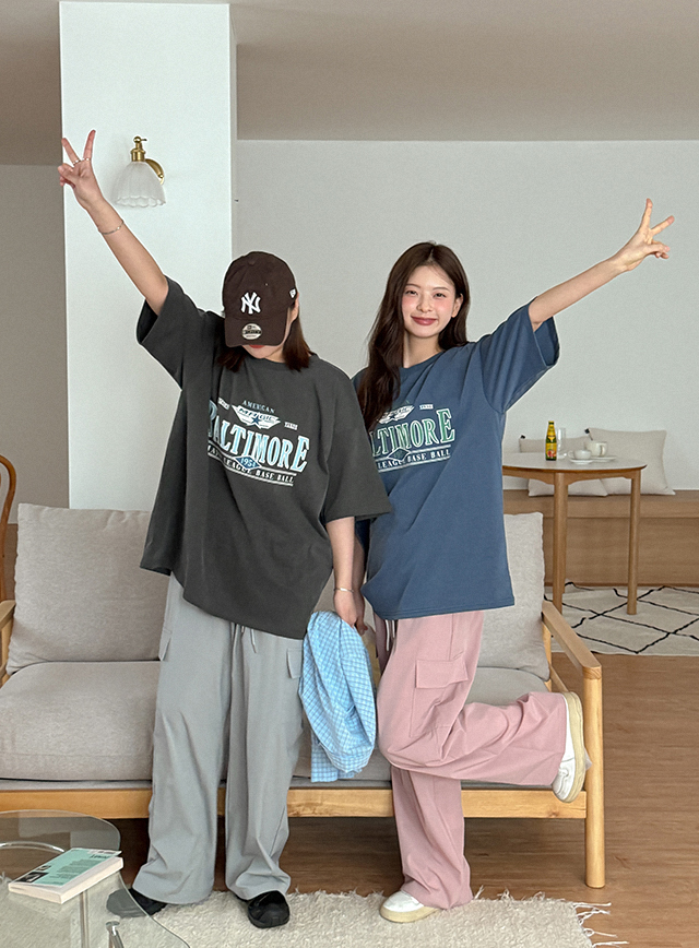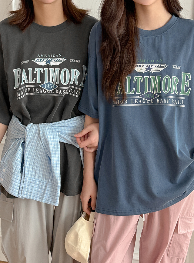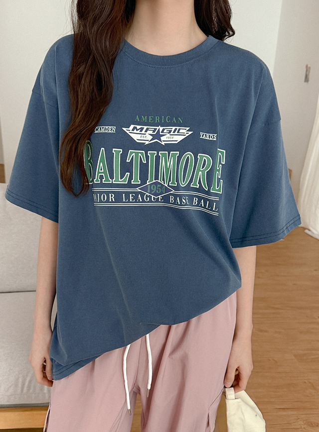 볼티모어 宽松 印刷 피그먼트 半袖 T恤衫 80924