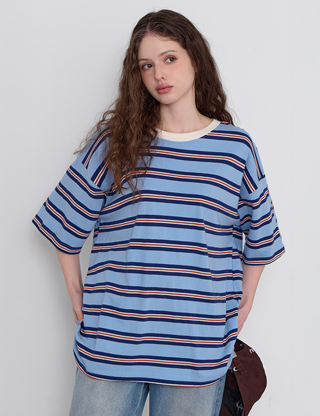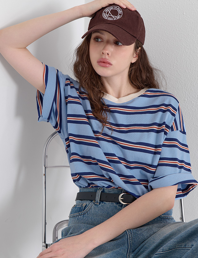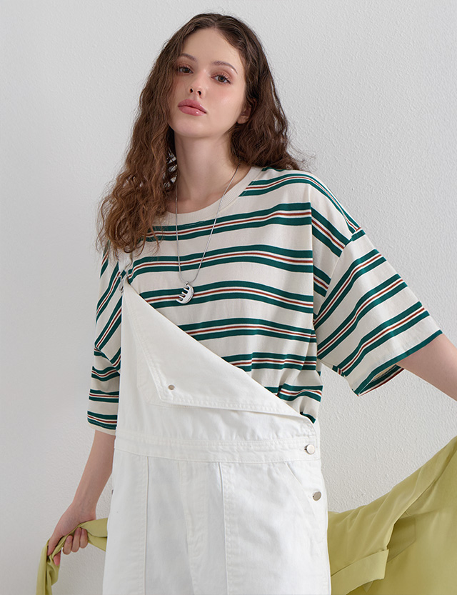 · 상의 하나만으로 포인트가 완성되는 스트라이프 티셔츠