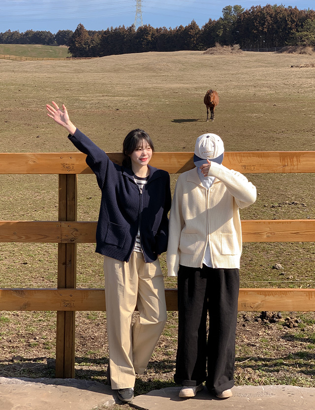 • 모릴 领 双重 针织衫 拉链卫衣 开衫 80753