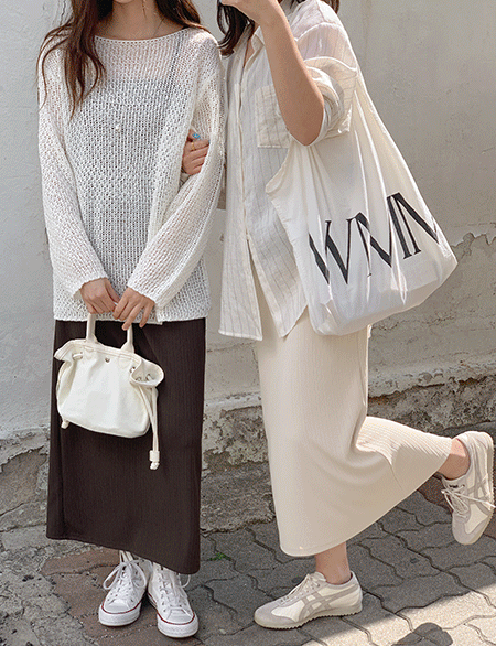 • 칸느 竖纹 松紧带 长款 裙子 81387