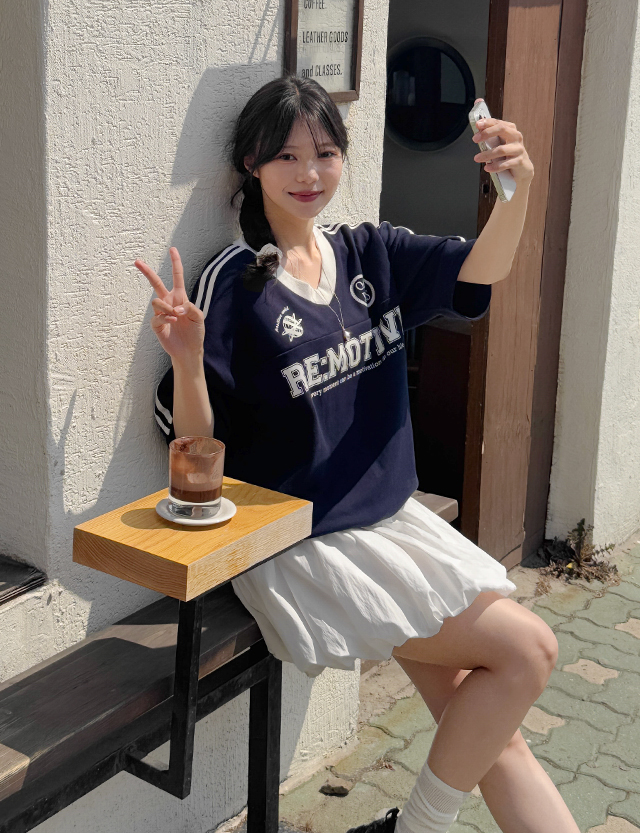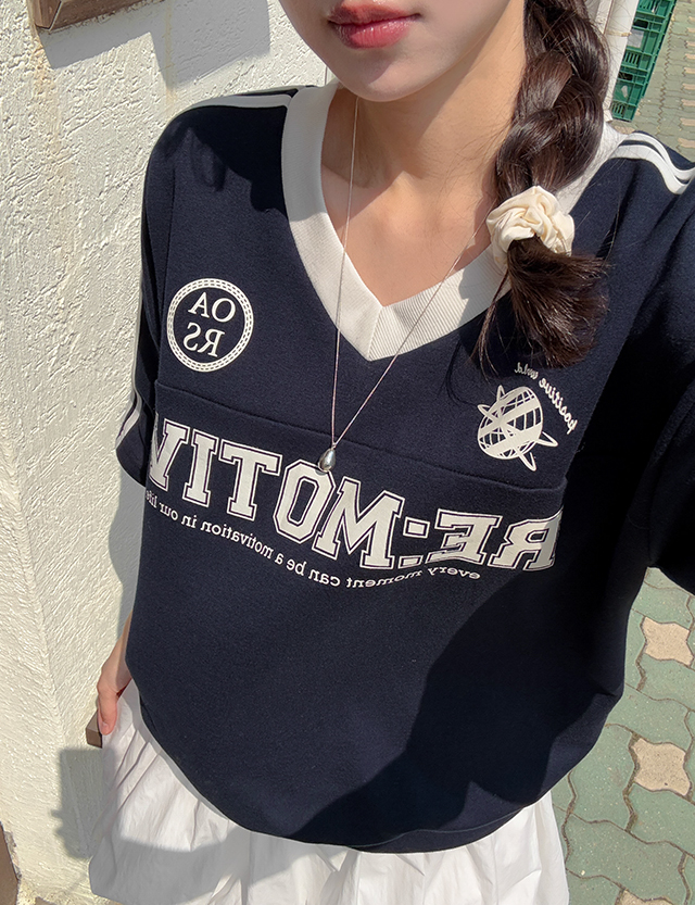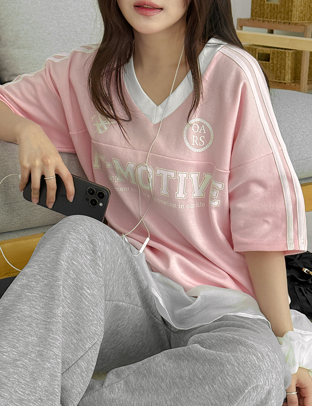 트랜디한 무드가 느껴지는 트랙 라인 티셔츠