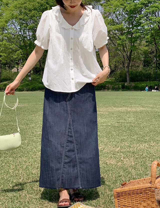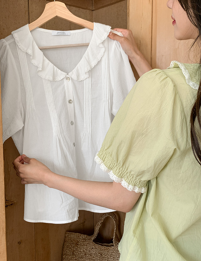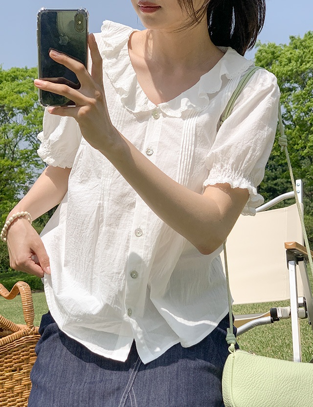 로맨틱하면서 여리한 무드의 프릴 블라우스
