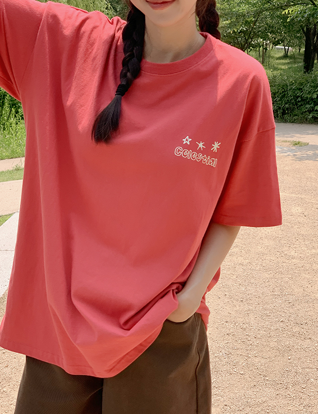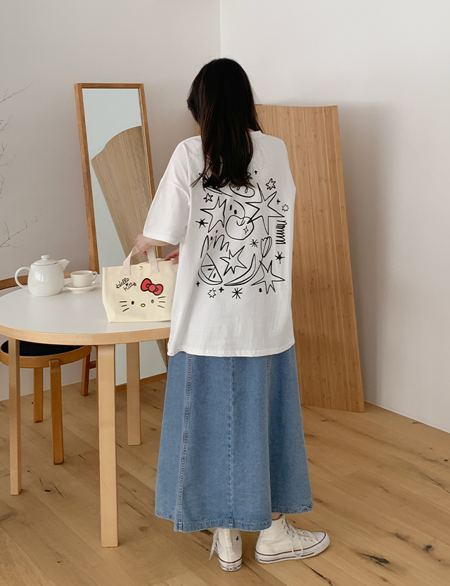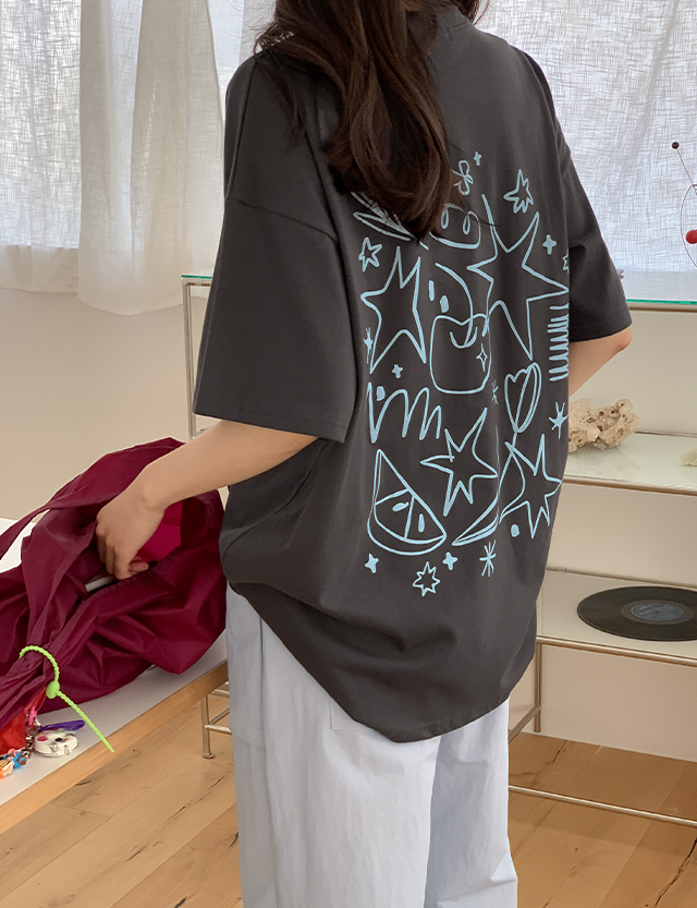 셀레스티 드로잉 印刷 宽松 长款 半袖 T恤衫 81739