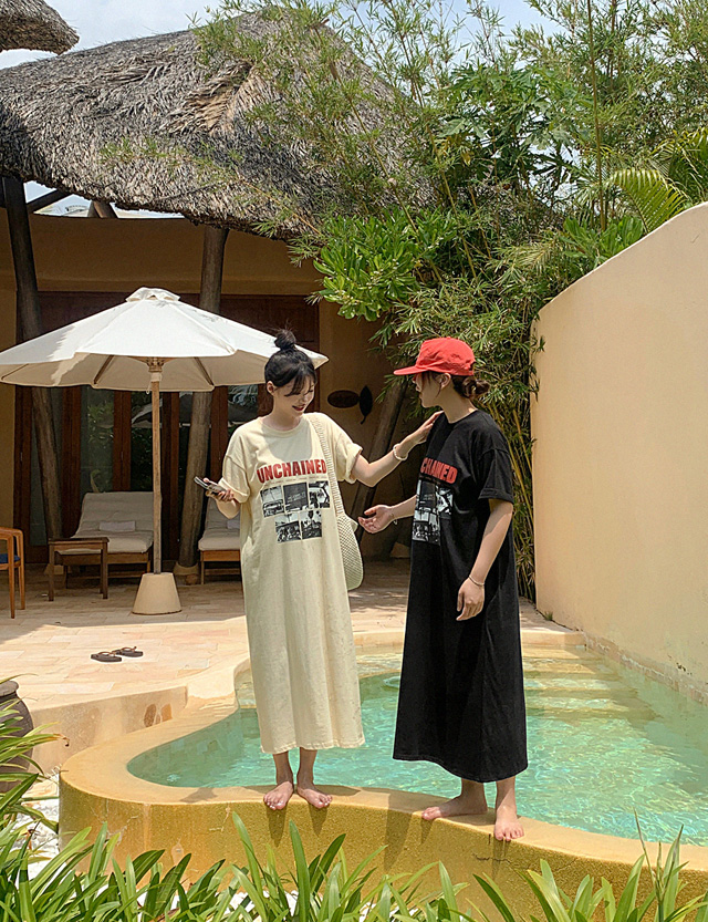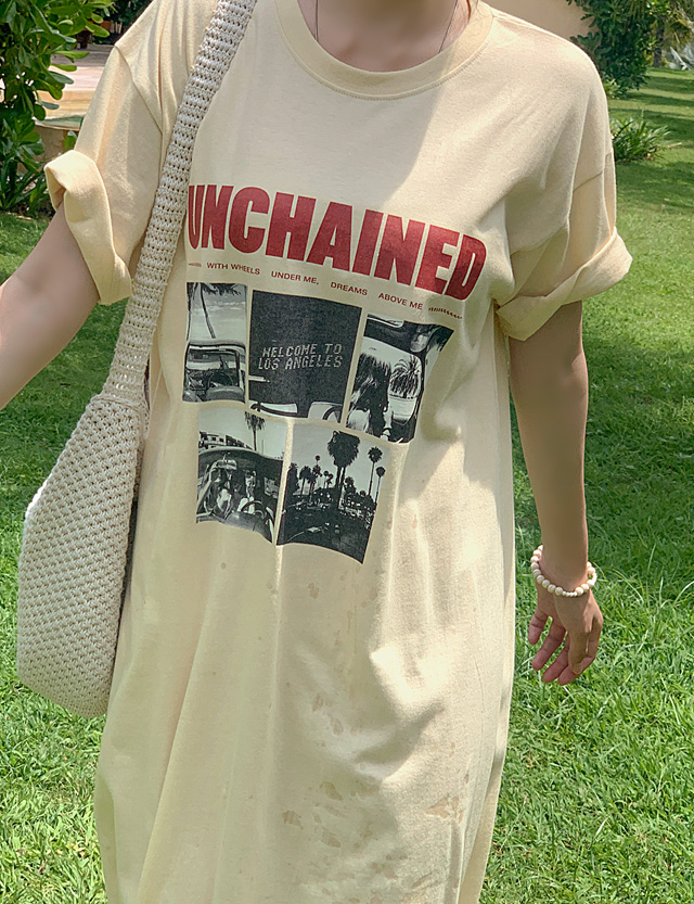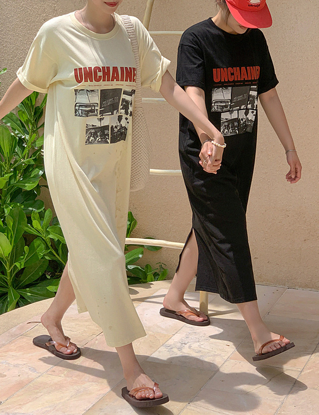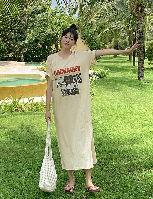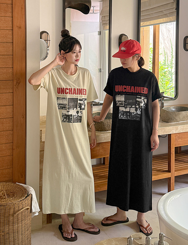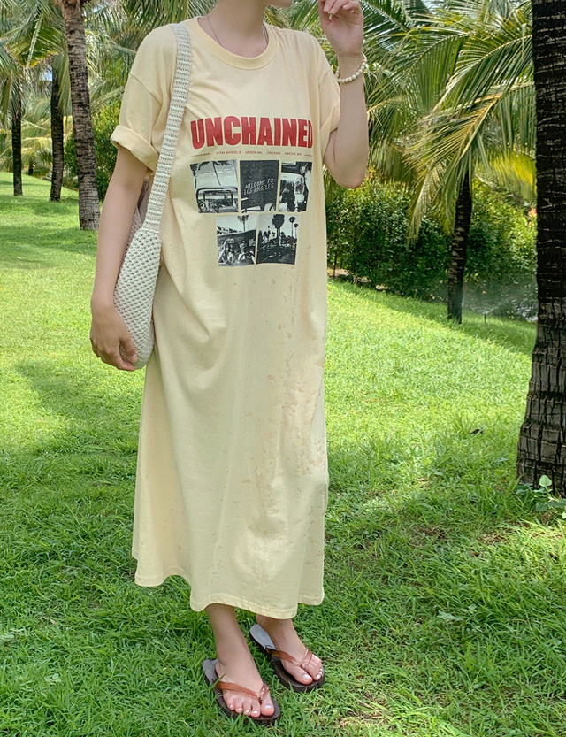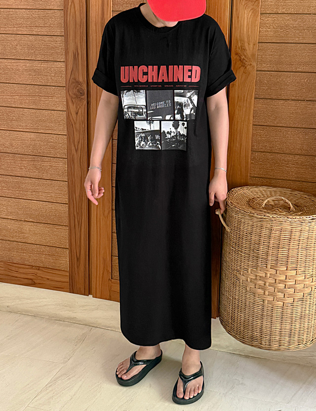 언체인드 宽松 印刷 长款 连衣裙 82290