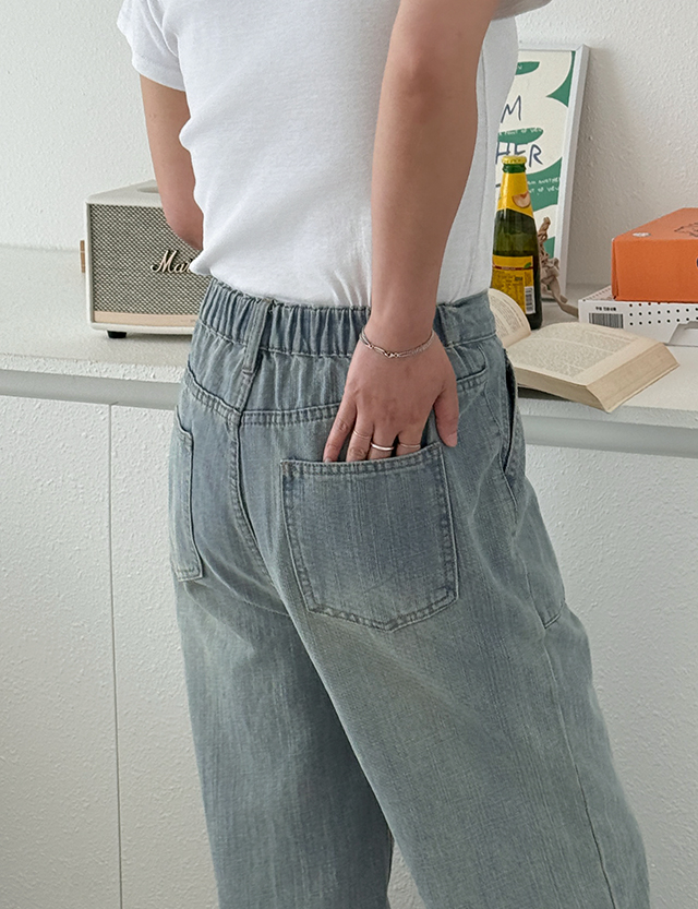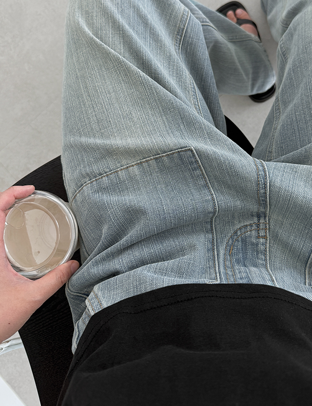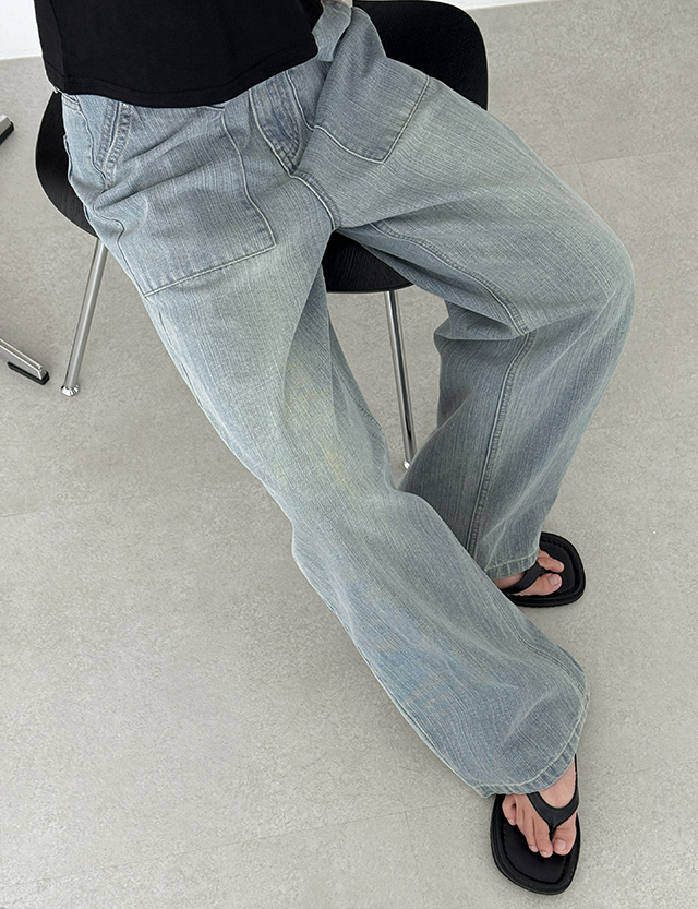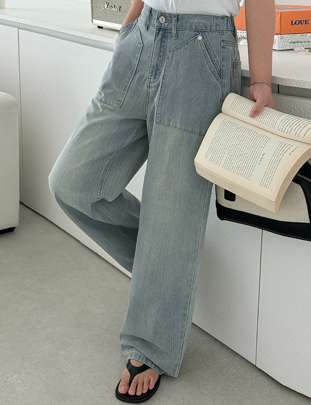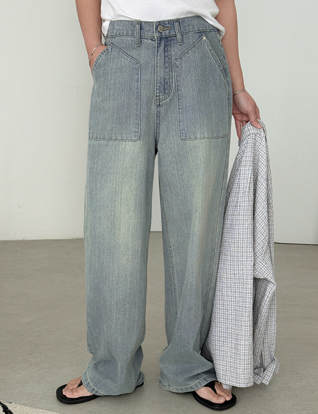 포켓 포인트 와이드 데님 팬츠