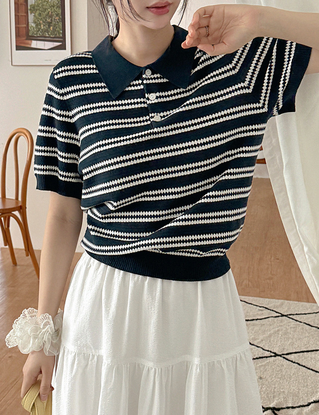 캐주얼한 무드로 활용하기 좋은 니트 카라티