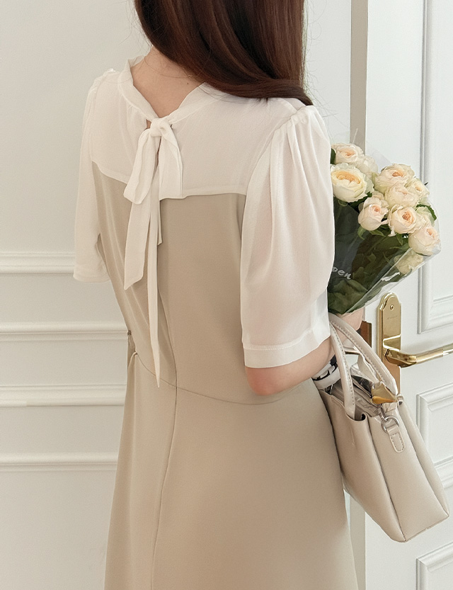 뒷목으로 리본 연출 및 스카프 디자인으로
