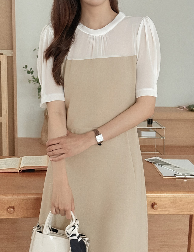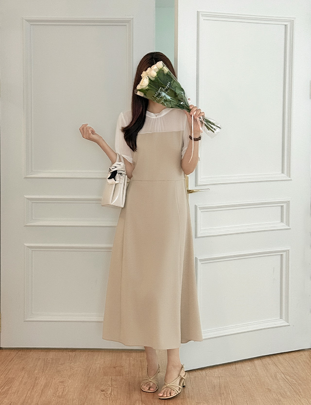 바스트 윗부분은 살결이 은은하게 비치는 시스루 소재로