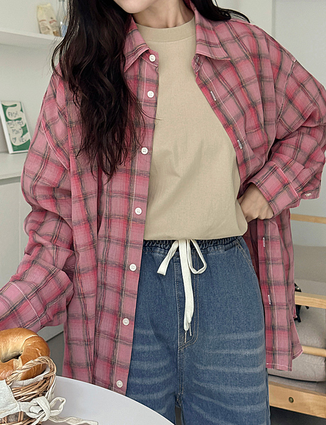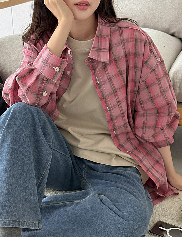 크렌벨 루즈핏 빈티지 체크 셔츠