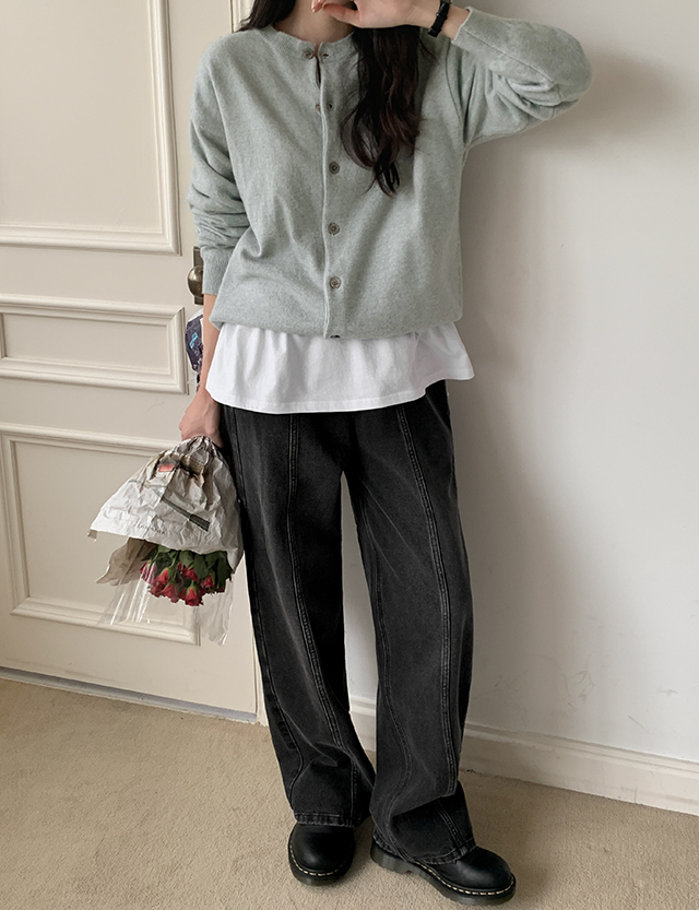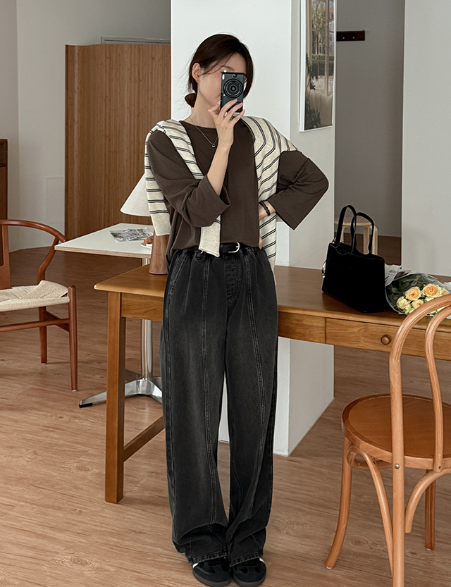 分层 필수템 褶皱 串 长袖 T恤衫 83817