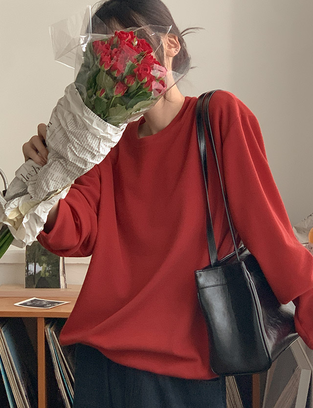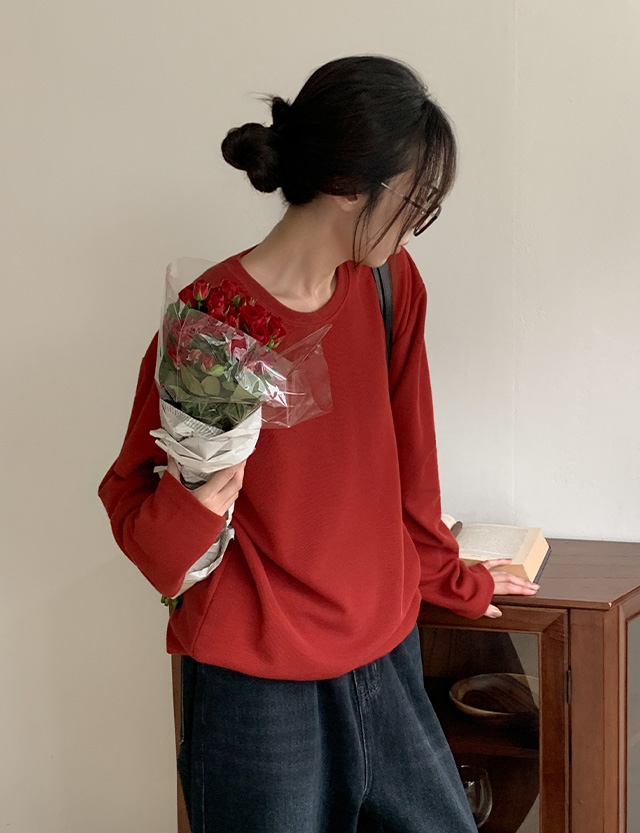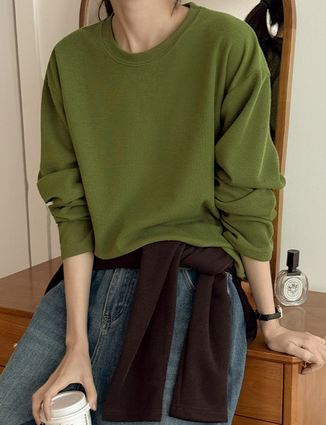 슬논 루즈핏 밴딩 라운드 니트입니다.